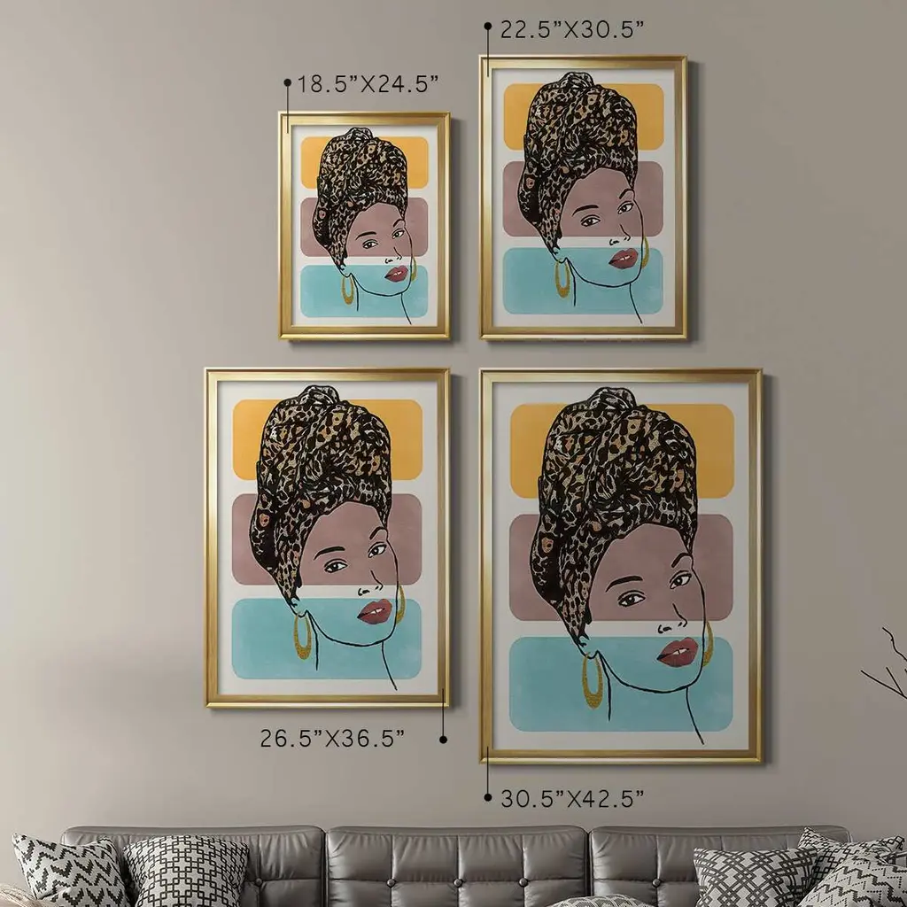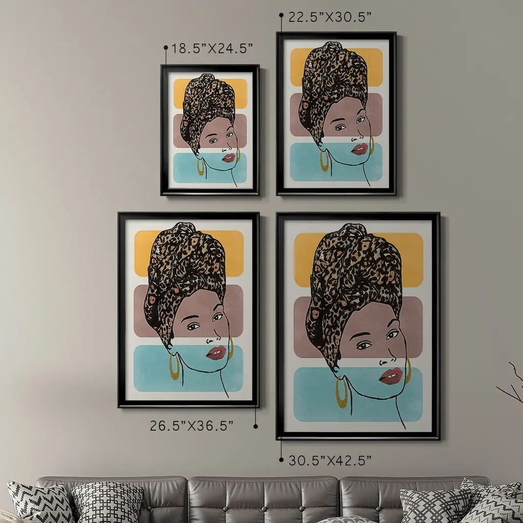 Head Wrap I Premium Framed Print - Ready to Hang A Premium Framed Print created to last. Framed in distressed wood and available in an array of sizes and colors Featuring a beveled a solid wood stretcher bar, each piece comes ready to hand 4 SIZES AVAILABLE 30.5''X42.5'' - Overall Size 26.5'X36.5'' - Overall Size 22.5''x30.5'' - Overall Size 18.5''x24.5'' - Overall Size Each piece is made to order. Each piece comes with hanging hardware. Made in the USA Ready to Hang