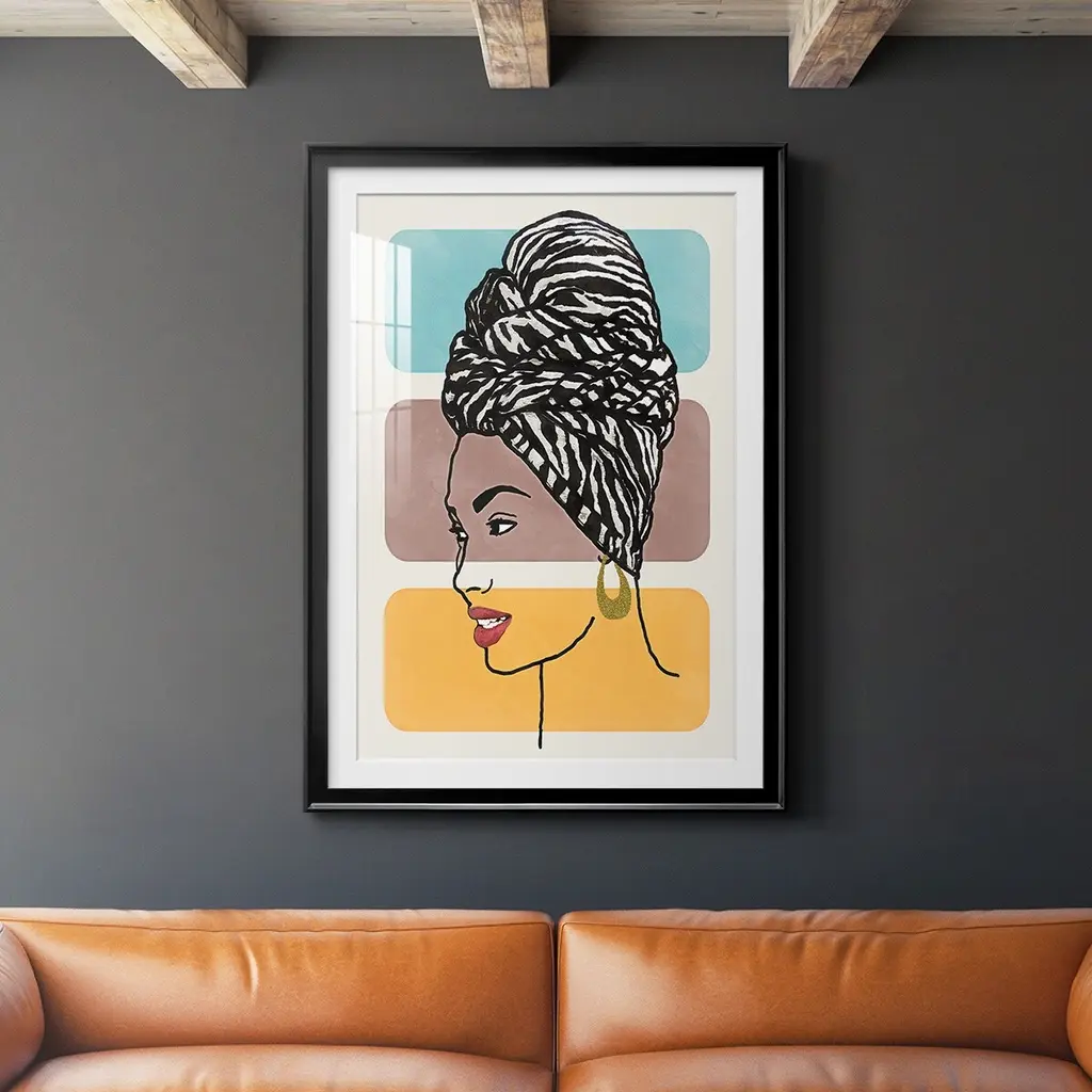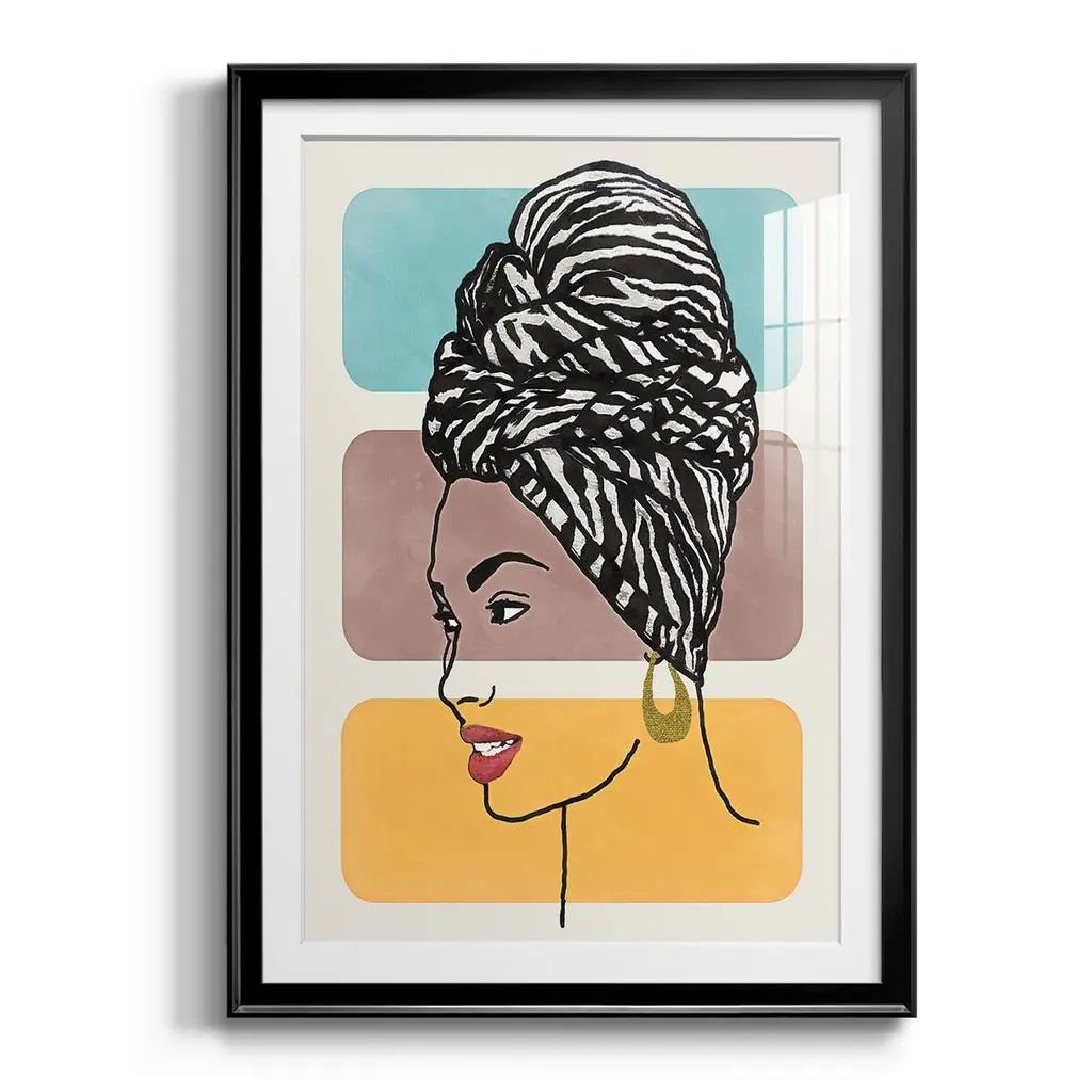 Head Wrap II Premium Framed Print - Ready to Hang A Premium Framed Print created to last. Framed in distressed wood and available in an array of sizes and colors Featuring a beveled a solid wood stretcher bar, each piece comes ready to hand 4 SIZES AVAILABLE 30.5''X42.5'' - Overall Size 26.5'X36.5'' - Overall Size 22.5''x30.5'' - Overall Size 18.5''x24.5'' - Overall Size Each piece is made to order. Each piece comes with hanging hardware. Made in the USA Ready to Hang Giclee Paper Print Acrylic Glass Beveled Matt Board
