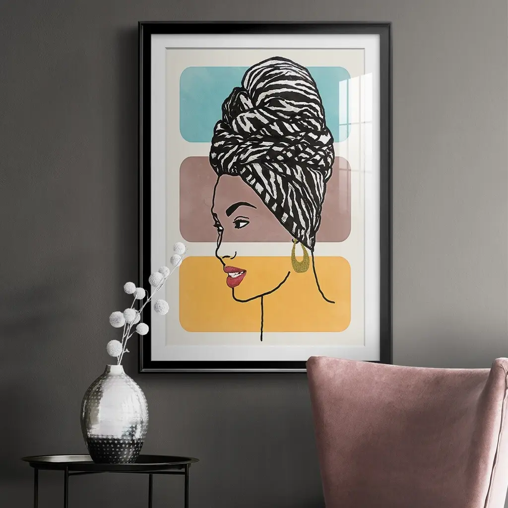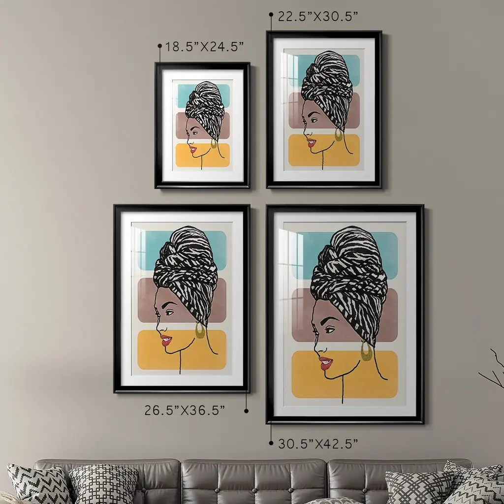 Head Wrap II Premium Framed Print - Ready to Hang A Premium Framed Print created to last. Framed in distressed wood and available in an array of sizes and colors Featuring a beveled a solid wood stretcher bar, each piece comes ready to hand 4 SIZES AVAILABLE 30.5''X42.5'' - Overall Size 26.5'X36.5'' - Overall Size 22.5''x30.5'' - Overall Size 18.5''x24.5'' - Overall Size Each piece is made to order. Each piece comes with hanging hardware. Made in the USA Ready to Hang Giclee Paper Print Acrylic Glass Beveled Matt Board