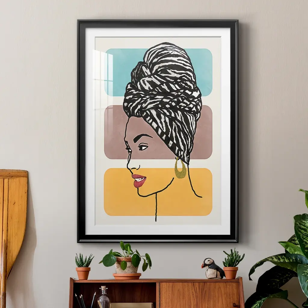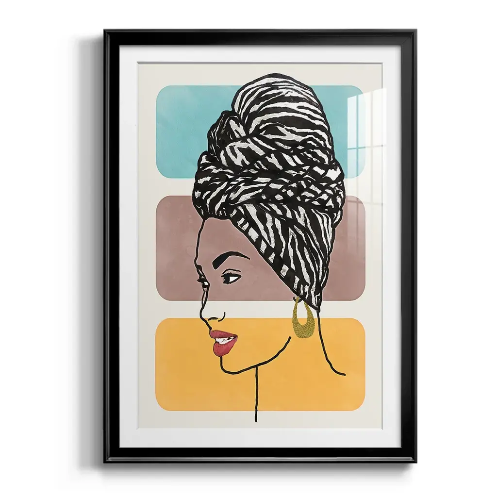Head Wrap II Premium Framed Print - Ready to Hang A Premium Framed Print created to last. Framed in distressed wood and available in an array of sizes and colors Featuring a beveled a solid wood stretcher bar, each piece comes ready to hand 4 SIZES AVAILABLE 30.5''X42.5'' - Overall Size 26.5'X36.5'' - Overall Size 22.5''x30.5'' - Overall Size 18.5''x24.5'' - Overall Size Each piece is made to order. Each piece comes with hanging hardware. Made in the USA Ready to Hang Giclee Paper Print Acrylic Glass Beveled Matt Board