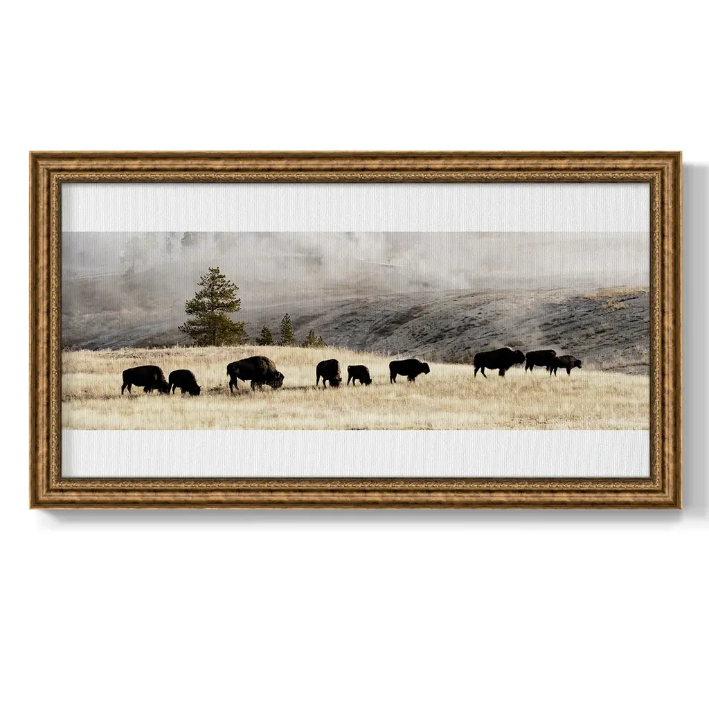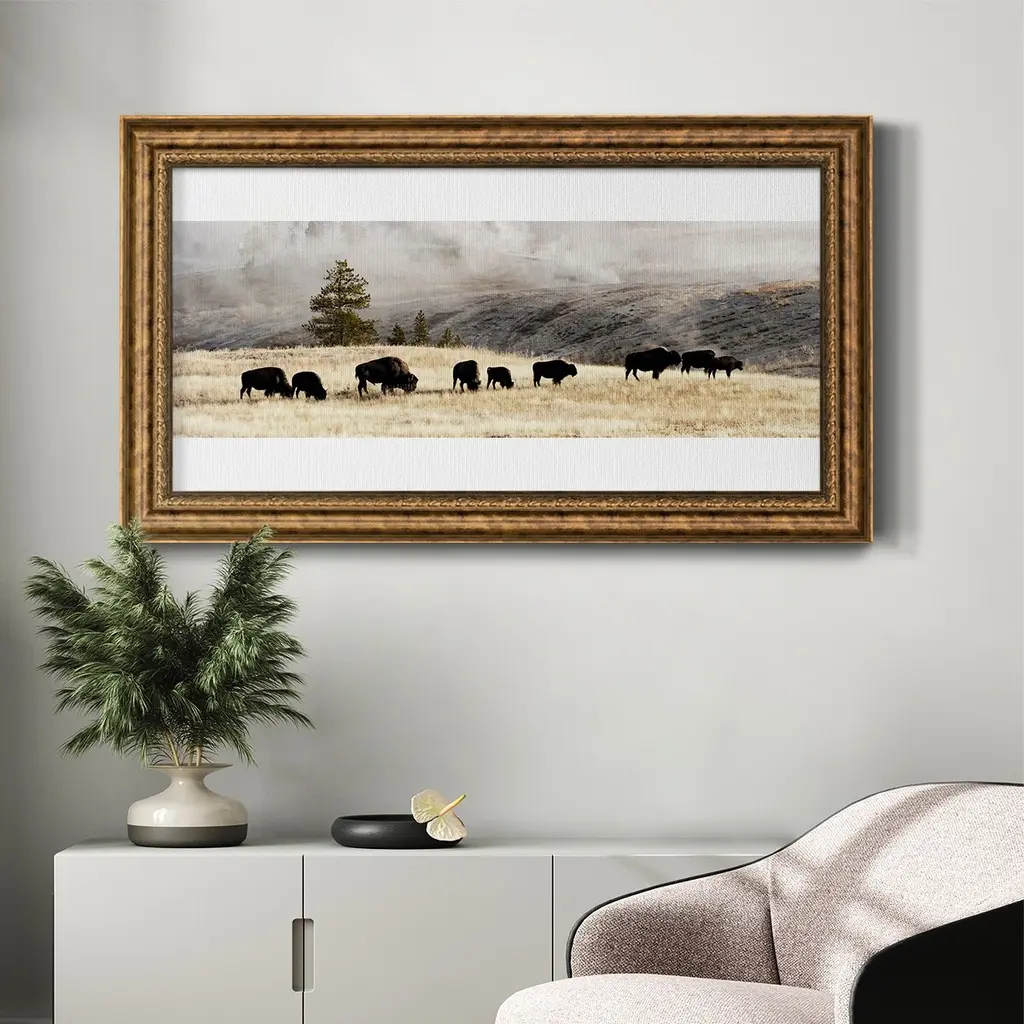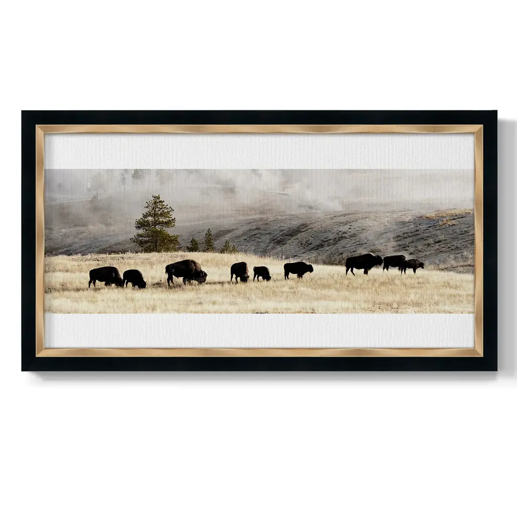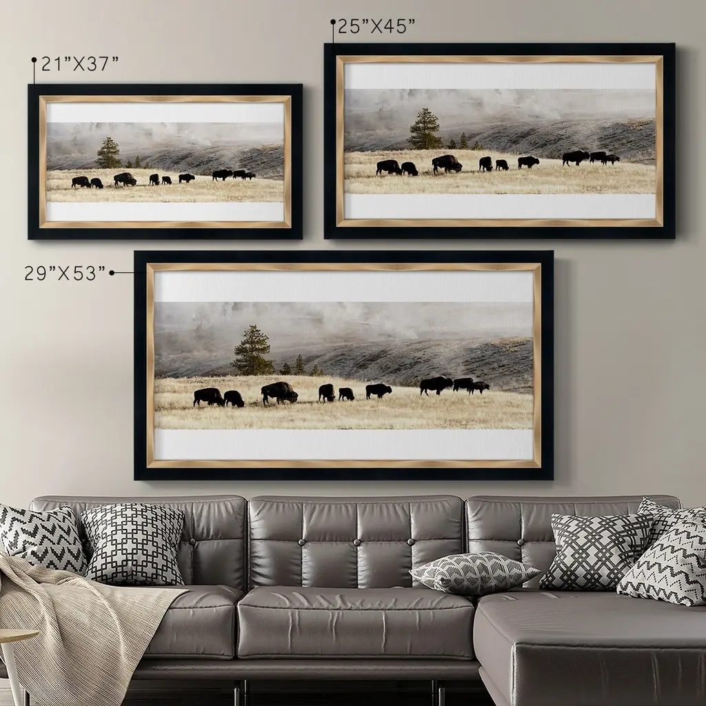 Heading Home Premium Framed Canvas- Ready to Hang A Premium Framed Canvas created to last. Framed in distressed wood and available in an array of sizes and colors Featuring a beveled a solid wood stretcher bar, each piece comes ready to hand 3 SIZES AVAILABLE 21''X37'' - Overall Size 25''X45'' - Overall Size 29''x53'' - Overall Size Each piece is made to order. Each piece comes with hanging hardware. Made in the USA Ready to Hang Giclee Paper Print Acrylic Glass Beveled Matt Board