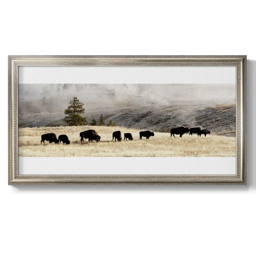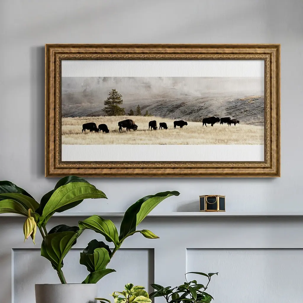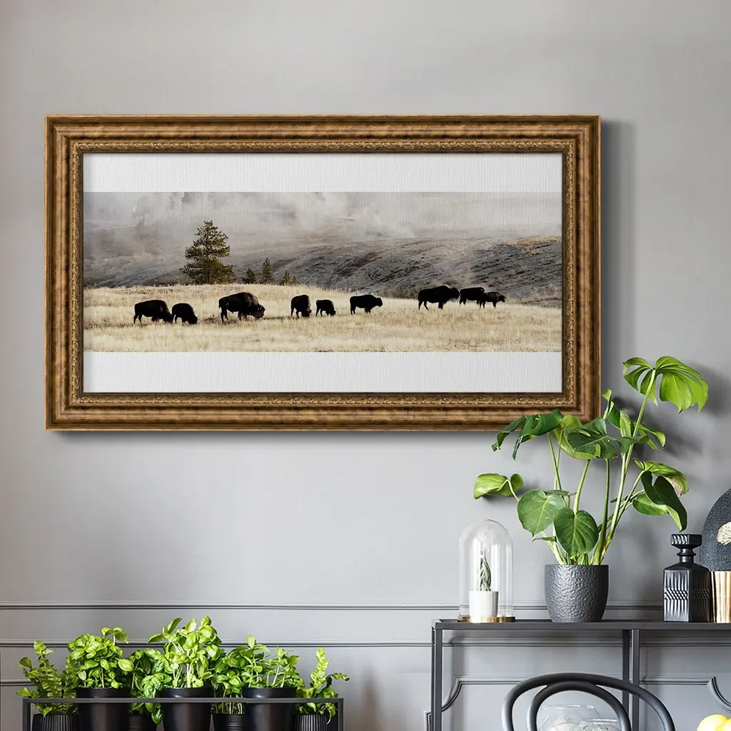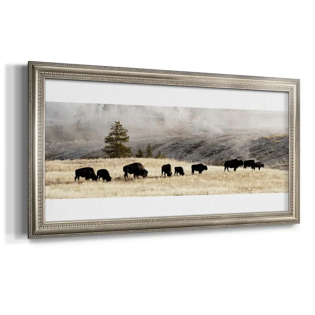 Heading Home Premium Framed Canvas- Ready to Hang A Premium Framed Canvas created to last. Framed in distressed wood and available in an array of sizes and colors Featuring a beveled a solid wood stretcher bar, each piece comes ready to hand 3 SIZES AVAILABLE 21''X37'' - Overall Size 25''X45'' - Overall Size 29''x53'' - Overall Size Each piece is made to order. Each piece comes with hanging hardware. Made in the USA Ready to Hang Giclee Paper Print Acrylic Glass Beveled Matt Board