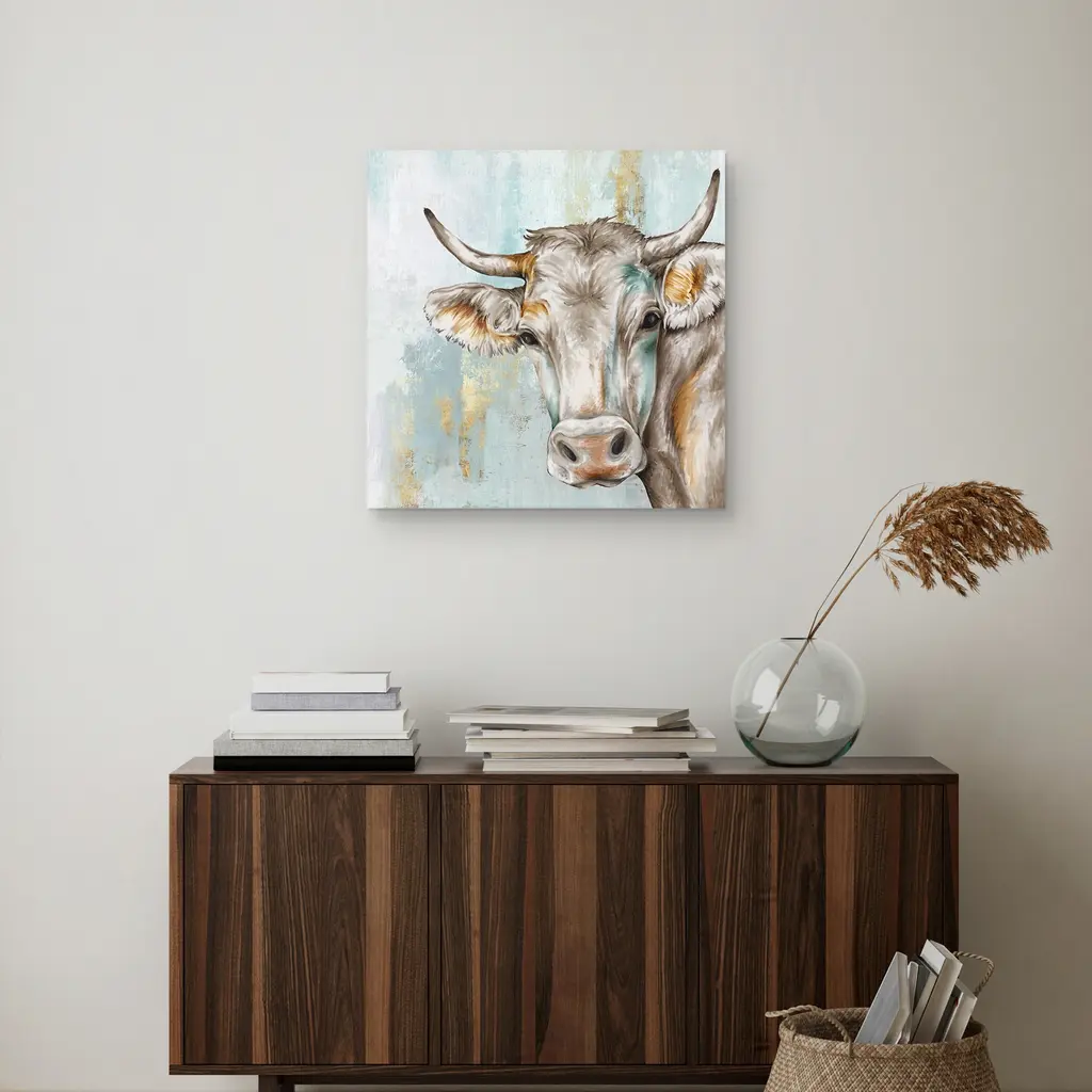 Headstrong Cow By Eva Watts Canvas Art Print - 24x24