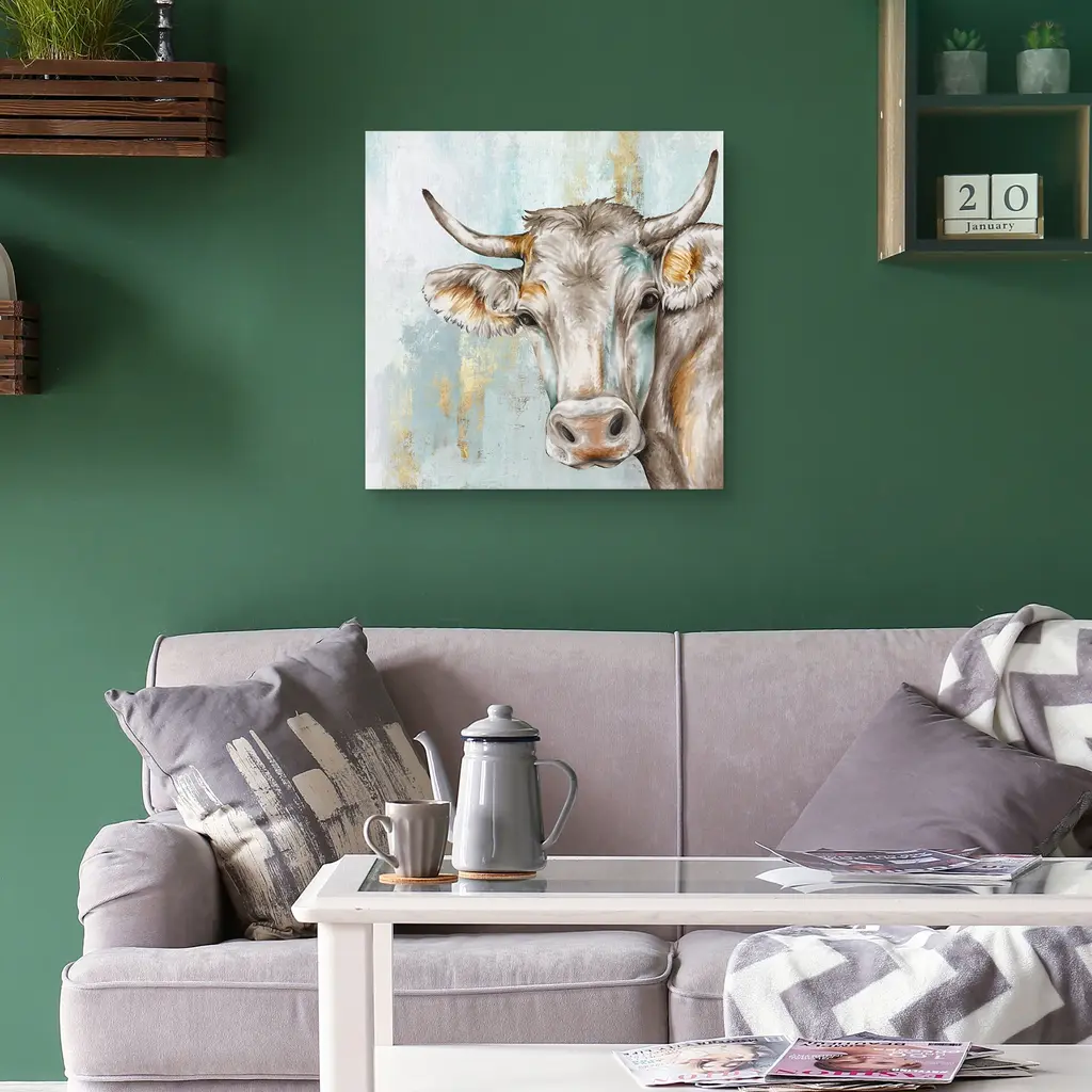 Headstrong Cow by Eva Watts Canvas Art Print is produced with printing that covers the entirety of the canvas for a sleek and stylish museum-quality look. Our framed prints are made by expert craftsmen who strive to make each canvas the masterpiece