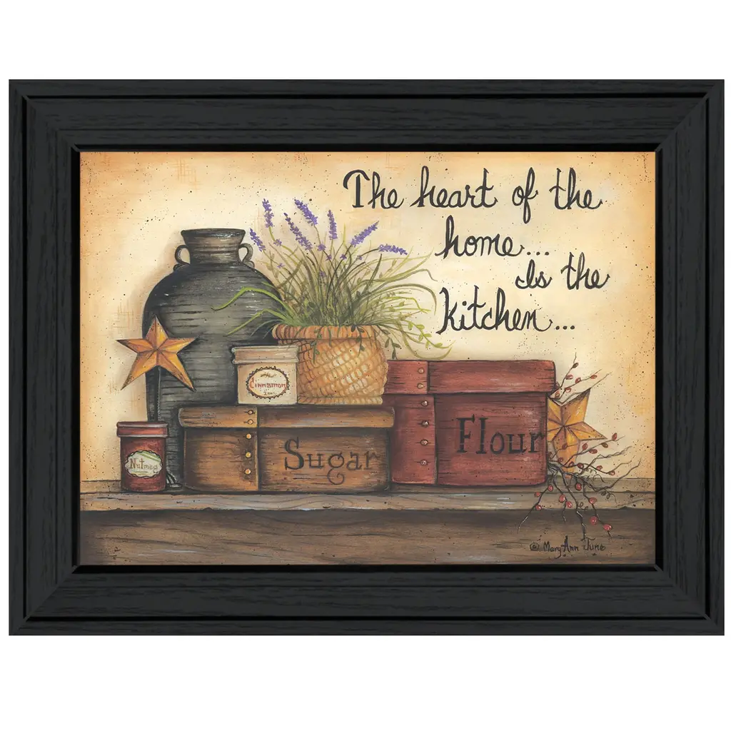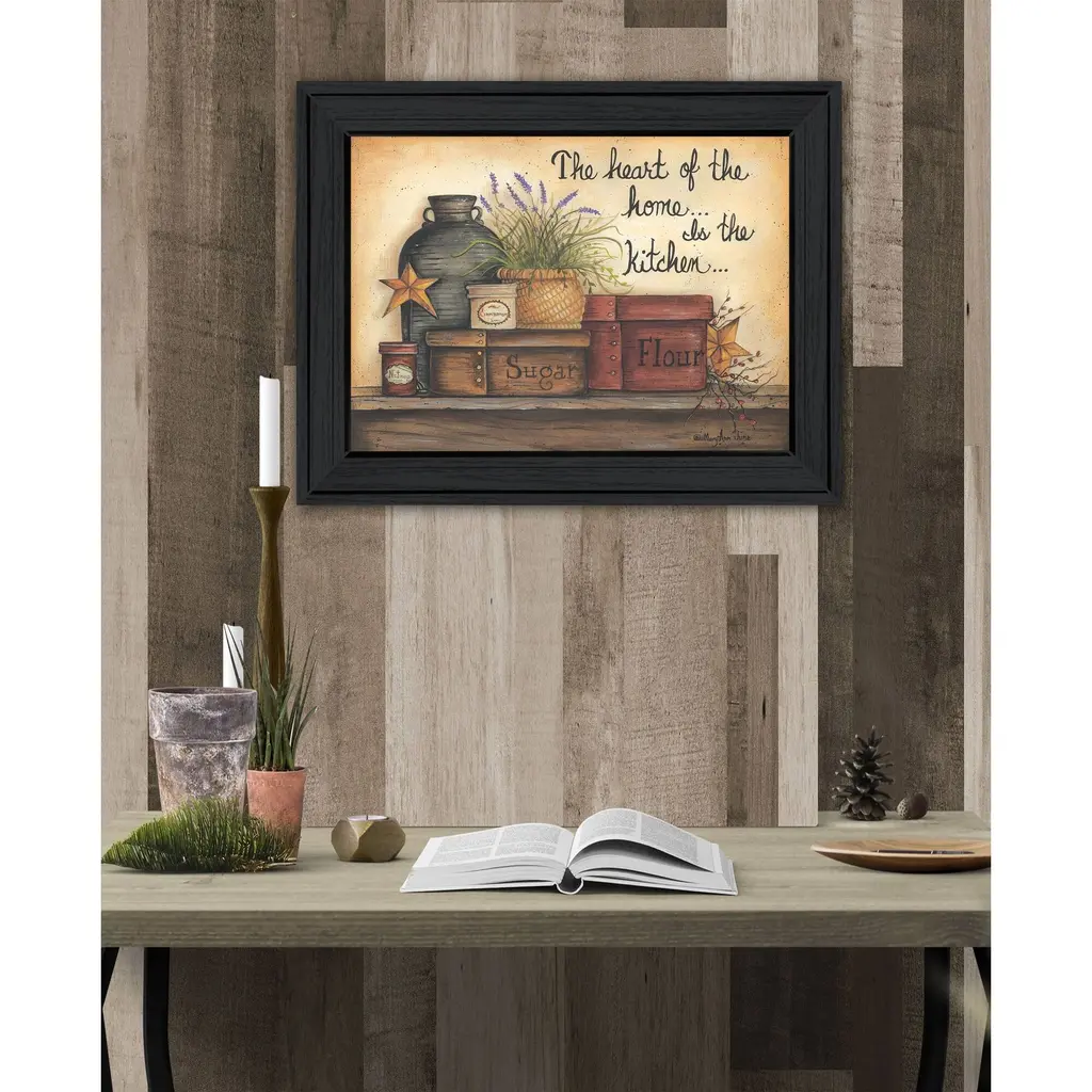 This heart of the home 7 black framed print wall art will add a beautiful decorative accent to your decor. This print is a visual artistic expression that allows you to decorate your space in style. Reproduced for you on paper, this hanging decorative accent will be a trendy and fashionable way to dress your walls. Adding this hanging wall art to your space to make your room feel more finished and attractive. Instantly liven up your space with this art that brings color and dimension to your walls. 15" H x 19" W x 1" D