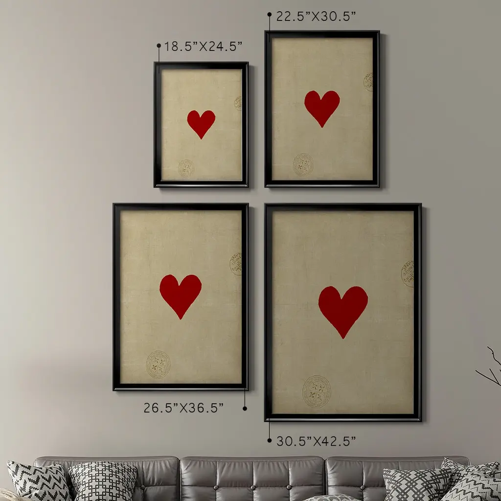 Heart Premium Framed Print - Ready to Hang A Premium Framed Print created to last. Framed in distressed wood and available in an array of sizes and colors Featuring a beveled a solid wood stretcher bar, each piece comes ready to hand 4 SIZES AVAILABLE 30.5''X42.5'' - Overall Size 26.5'X36.5'' - Overall Size 22.5''x30.5'' - Overall Size 18.5''x24.5'' - Overall Size Each piece is made to order. Each piece comes with hanging hardware. Made in the USA Ready to Hang