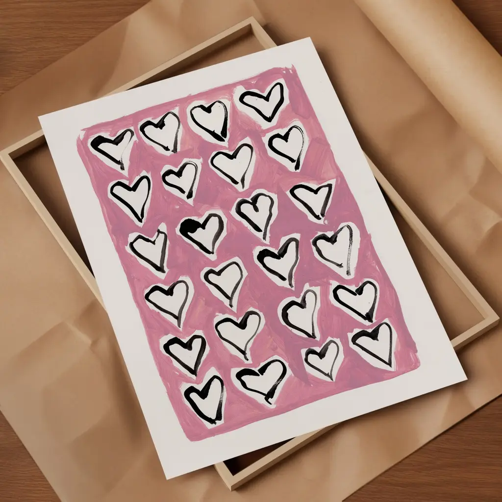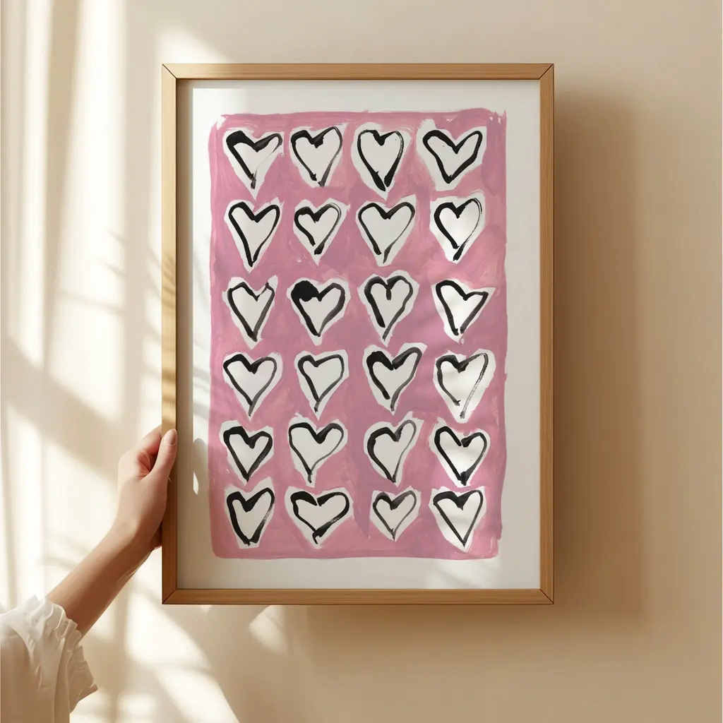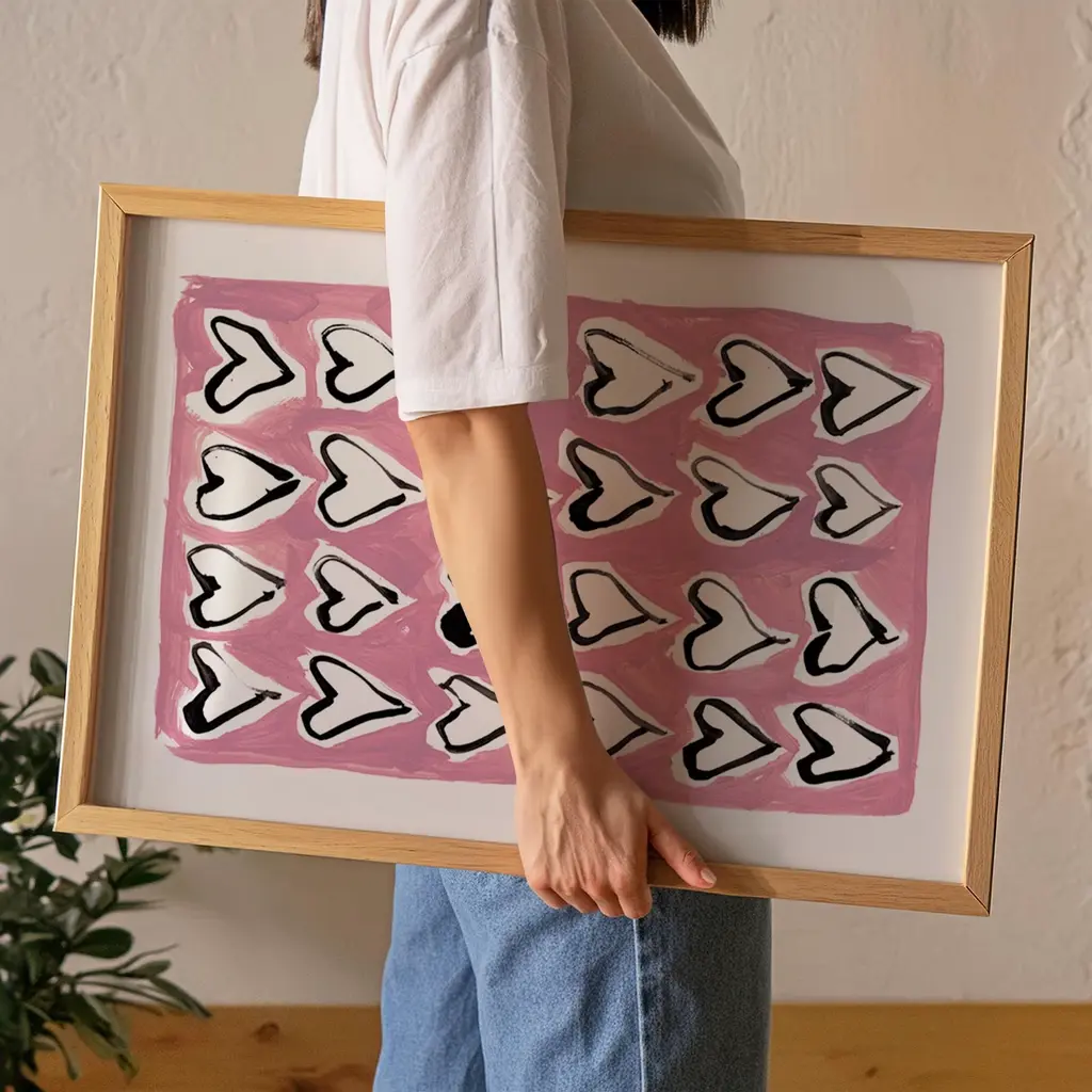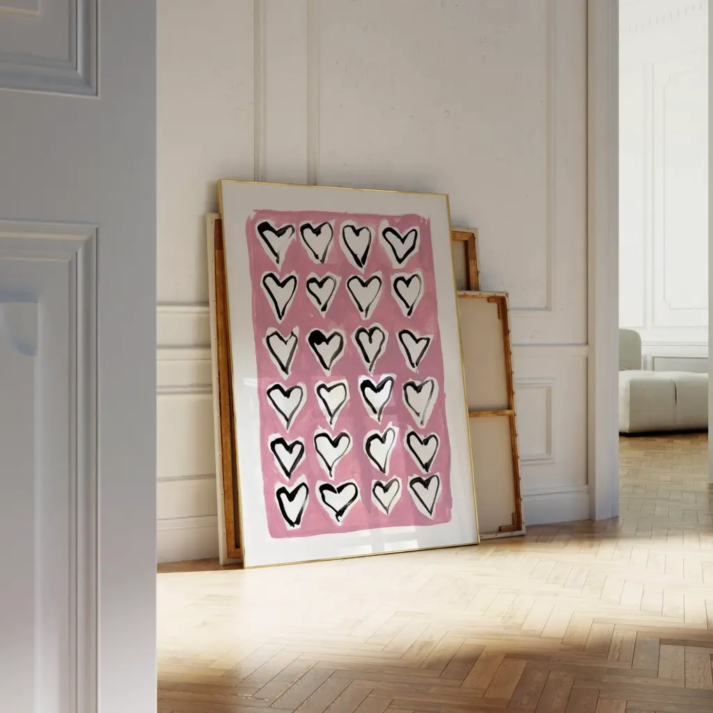 Hearts Hand Painted Art Print - A3