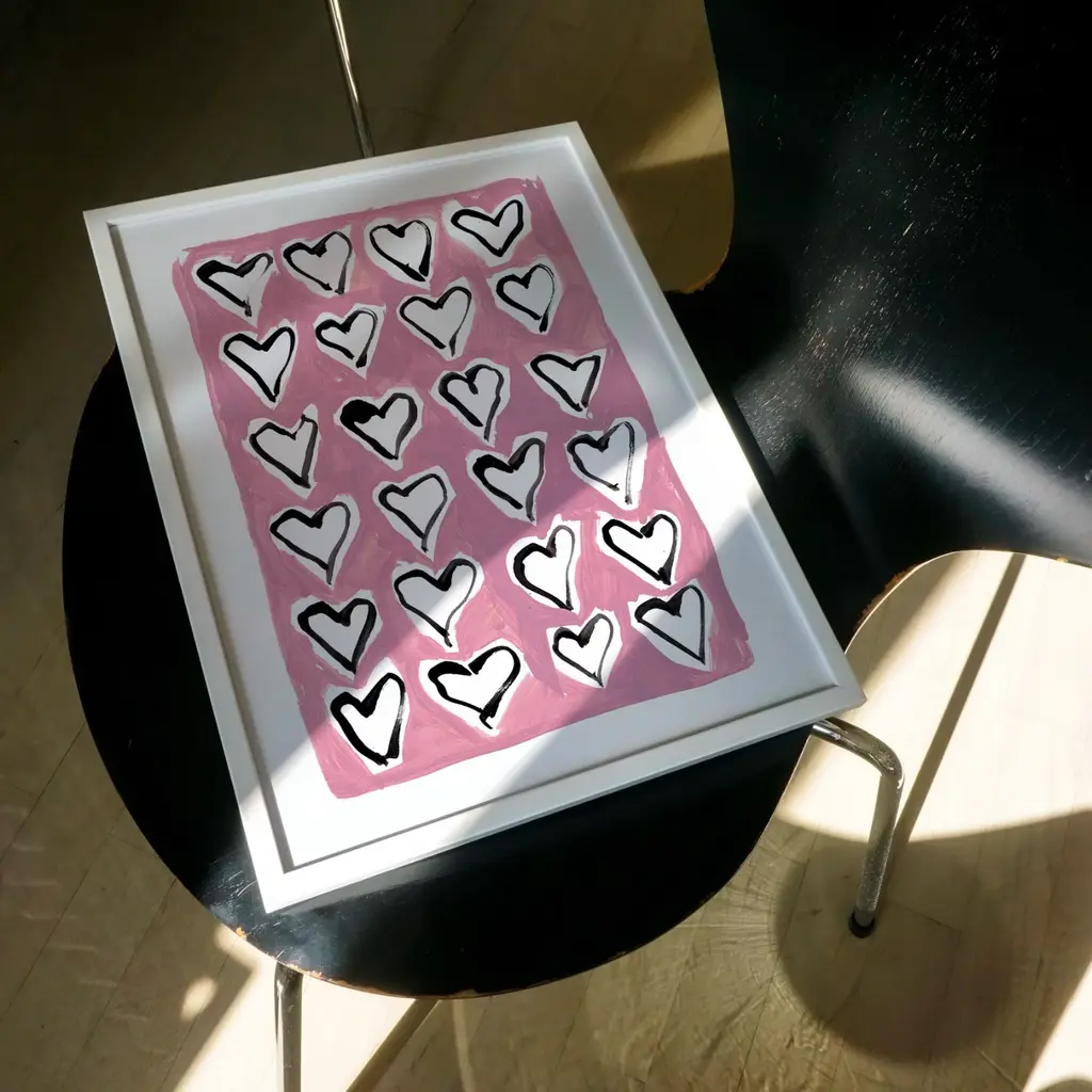 Hearts Hand Painted Art Print - A3Hand painted by Natalie and made into a beautiful print, this print is a perfect addition to any home decor. Smooth fine art 230 gsm matte card. Printed with vivid colour and detail. Sold without a frame.