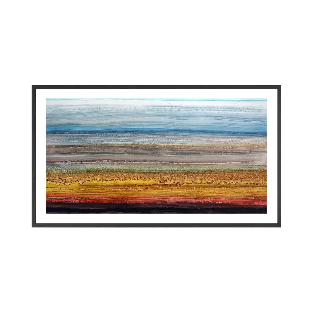 Motivating greatness is achieved in 'Heaven and Earth' by Norman Wyatt Jr. The graceful blue qualities and evolving greys create a symbolic depiction of the Heavens, barricaded by the ever dynamic rusty tones epitomizing Earth. The horizontal decorative artwork will complement your space with its transitional and contemporary aesthetic. This piece is handcrafted in Chattanooga, Tennessee by Ready2HangArt using a locally sourced artist print, with a frame and a rear hanger for simple installation. Offering a wide range of transitional subjects and unique textures, Norman Wyatt's collections will add interest to any modern or contemporary decor.