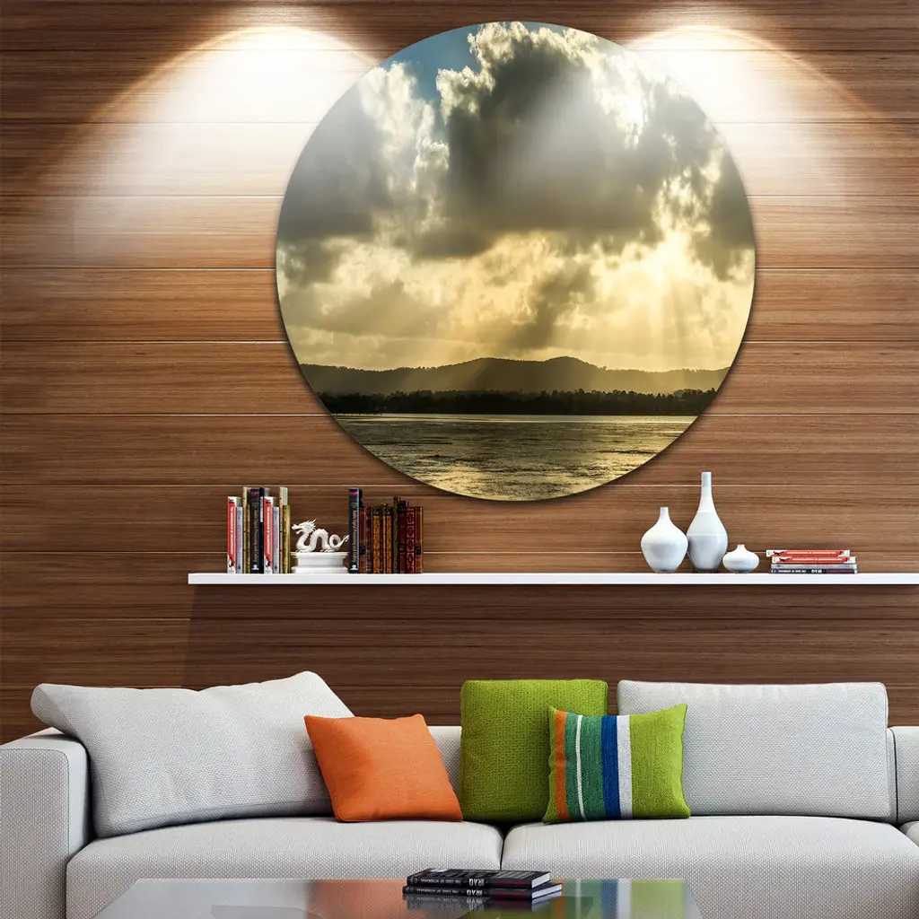Bring Contemporary Abstraction to your home with this large Circle Metal wall art. This Heavy Clouds over Foreshore Reserve Metal Artwork makes it the focal point of any room or office. - White Gloss Coating ensures colors are extra vibrant with light reflection.- Aluminum grade Sheet Metal with 1 inch mounting frame on the back giving the illusion that the artwork is floating on the wall..- Mounting Brackets are included along with instructions.- High Quality Digital images are created directly into a glossy aluminum panel producing a stunning and captivating print into the glossy finish of the metal.- Water, Fire and Scratch resistant HD Aluminum panels.- Looks better than any photo paper and guaranteed to last at least 20 years- Easy to clean with a microfiber cloth. Colors are far superior to regular Canvas Art. - Easy to Hang