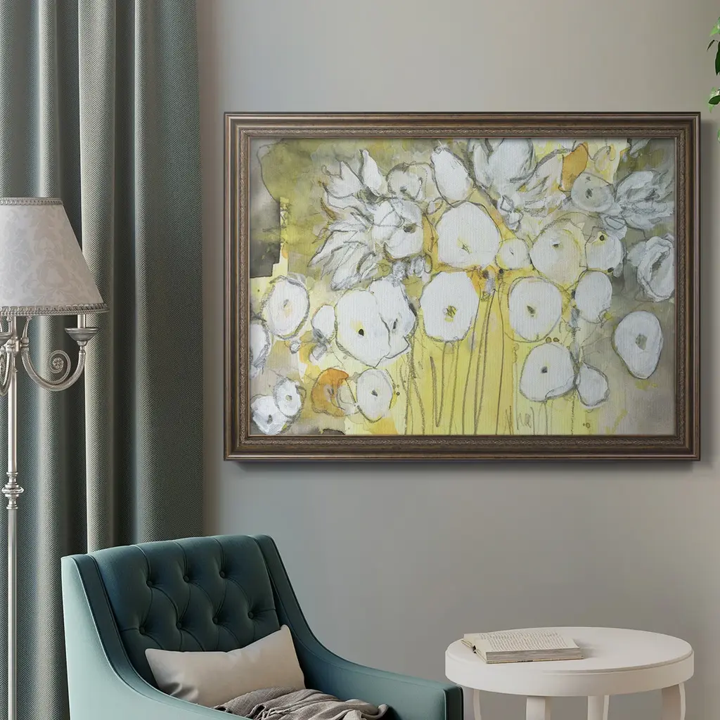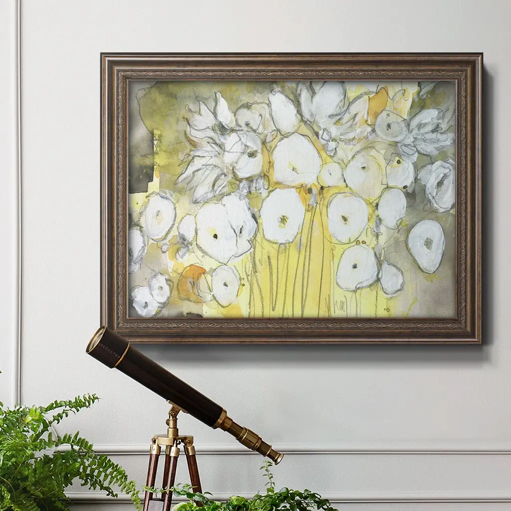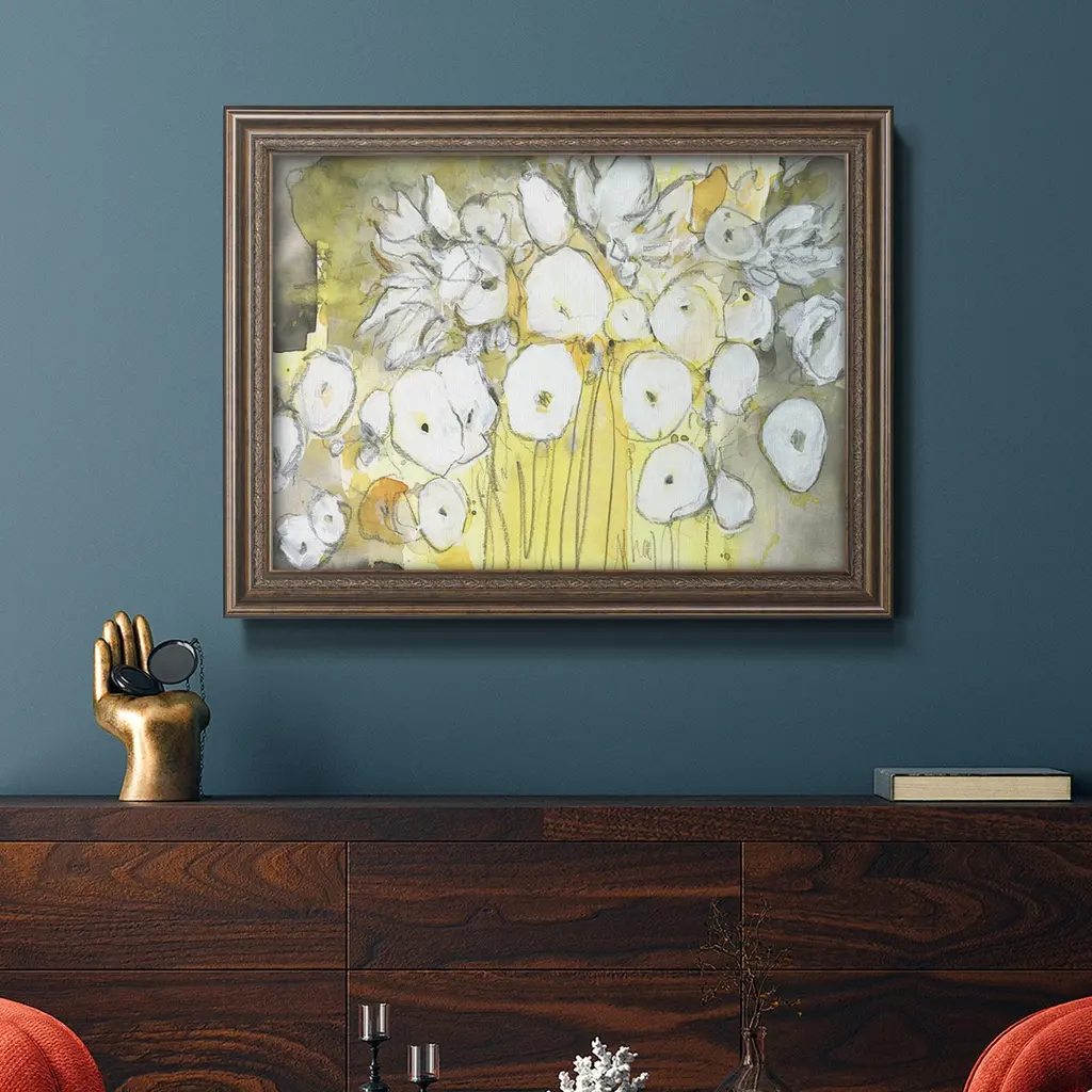 Heirloom Treasure II Premium Framed Canvas- Ready to Hang A Premium Framed Canvas created to last. Framed in distressed wood and available in an array of sizes and colors Featuring a beveled a solid wood stretcher bar, each piece comes ready to hand 3 SIZES AVAILABLE 16''X20'' - Overall Size 18'X27'' - Overall Size 24''x36'' - Overall Size Each piece is made to order. Each piece comes with hanging hardware. Made in the USA Ready to Hang Giclee Paper Print Acrylic Glass Beveled Matt Board