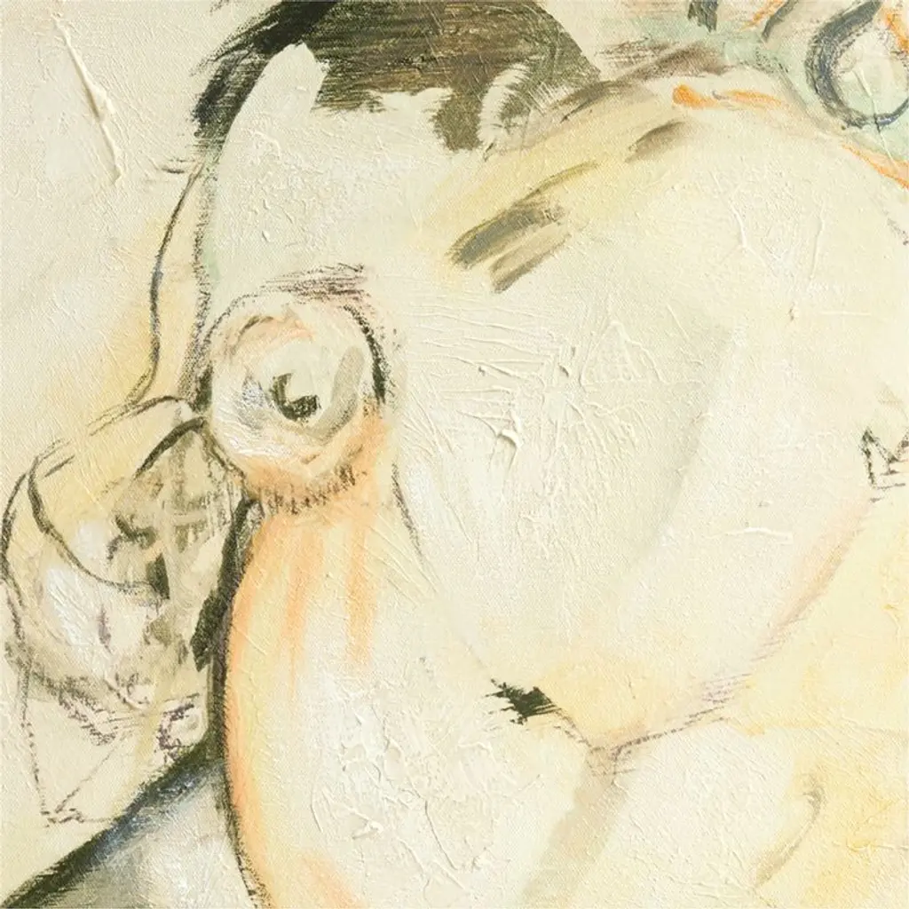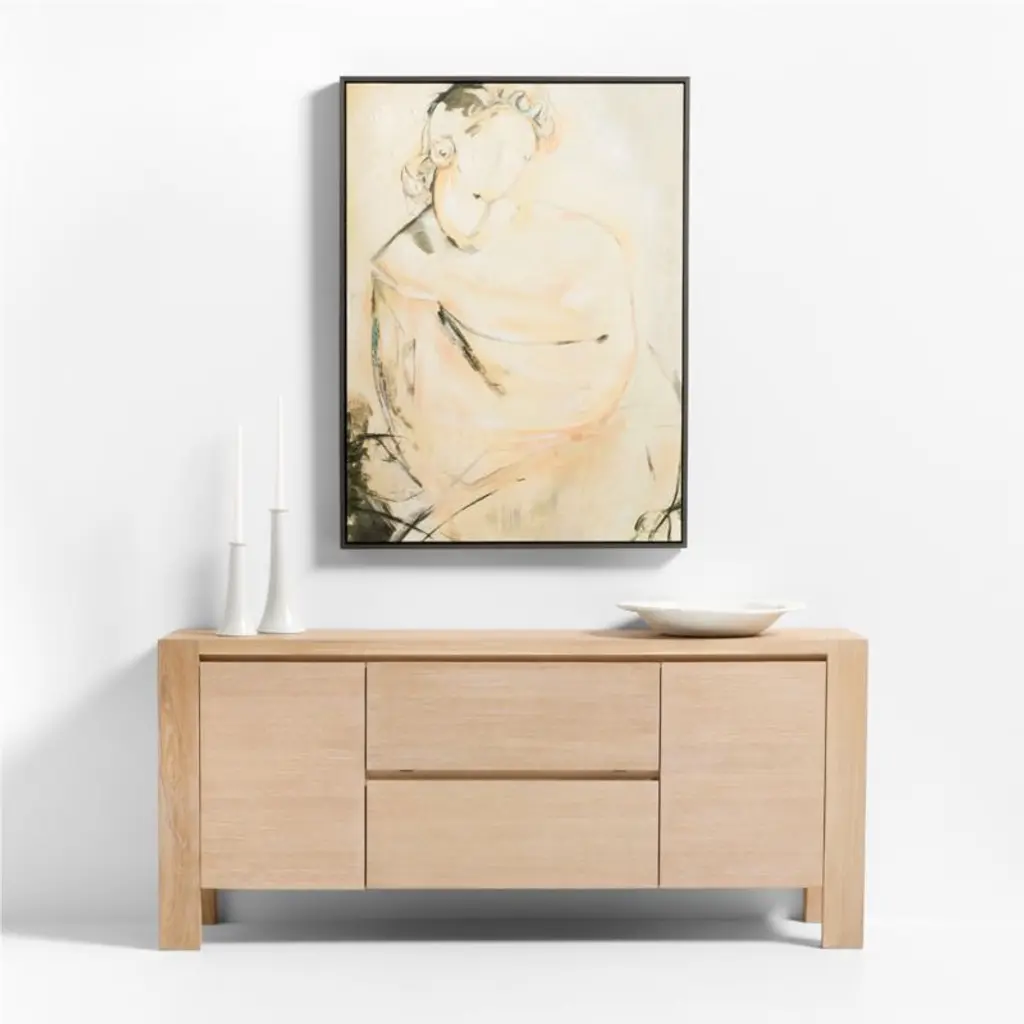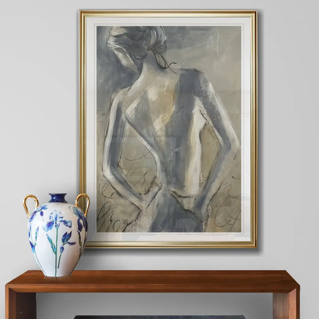 Artist Ksenia Sizaya uses abstraction, a variety of techniques and carefully drawn lines to create this graceful figure study. Based on the original mixed-media composition, each handcrafted work is made with a mix of acrylic paint and modeling paste that's scraped, combed and brushed to give the work dimension and texture. A dark charcoal-finished wood frame complements for a gallery-worthy presentation.