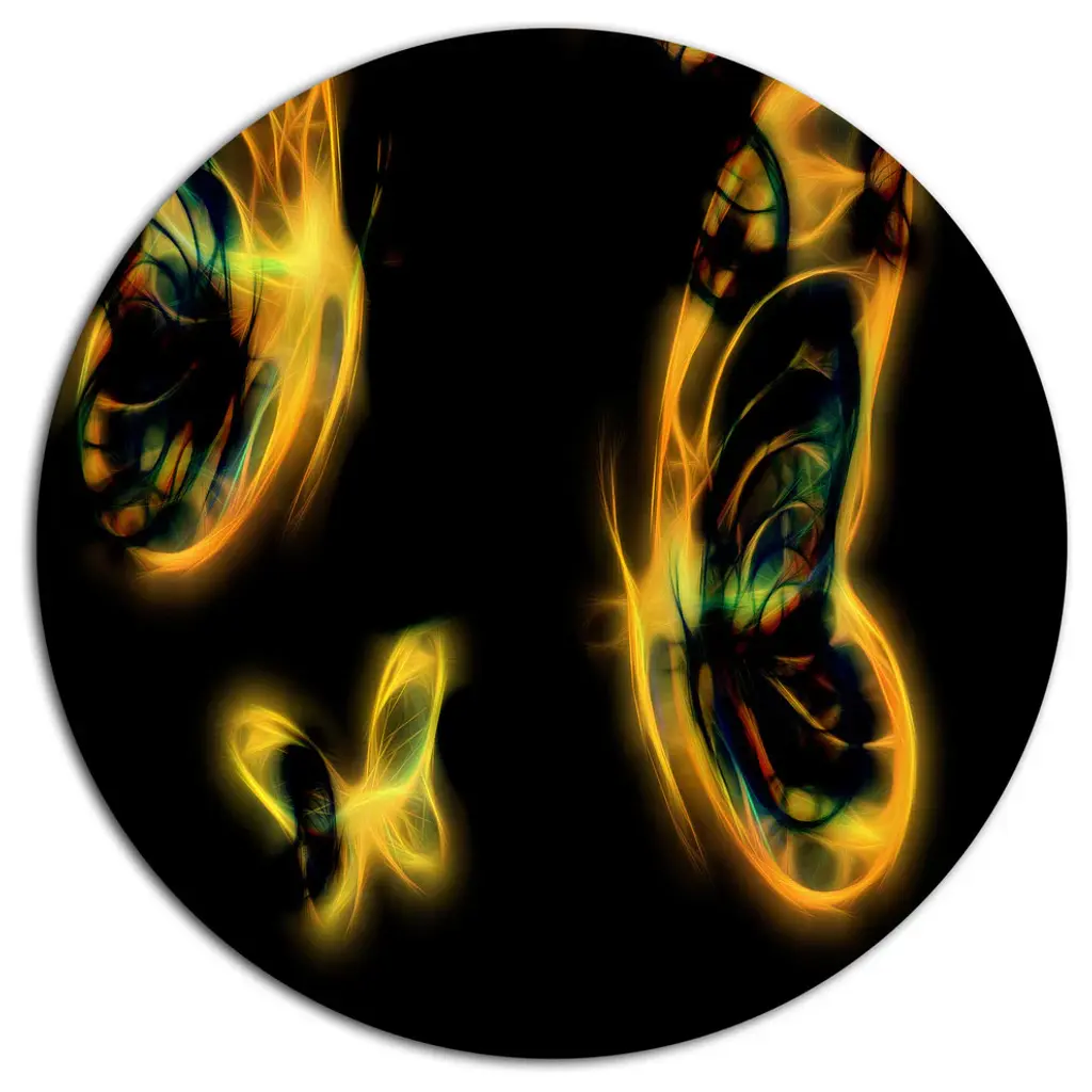 Bring Contemporary Abstraction to your home with this large Circle Metal wall art. This Hell Wings on Black Background Metal Artwork makes it the focal point of any room or office. - White Gloss Coating ensures colors are extra vibrant with light reflection.- Aluminum grade Sheet Metal with 1 inch mounting frame on the back giving the illusion that the artwork is floating on the wall..- Mounting Brackets are included along with instructions.- High Quality Digital images are created directly into a glossy aluminum panel producing a stunning and captivating print into the glossy finish of the metal.- Water, Fire and Scratch resistant HD Aluminum panels.- Looks better than any photo paper and guaranteed to last at least 20 years- Easy to clean with a microfiber cloth. Colors are far superior to regular Canvas Art. - Easy to Hang