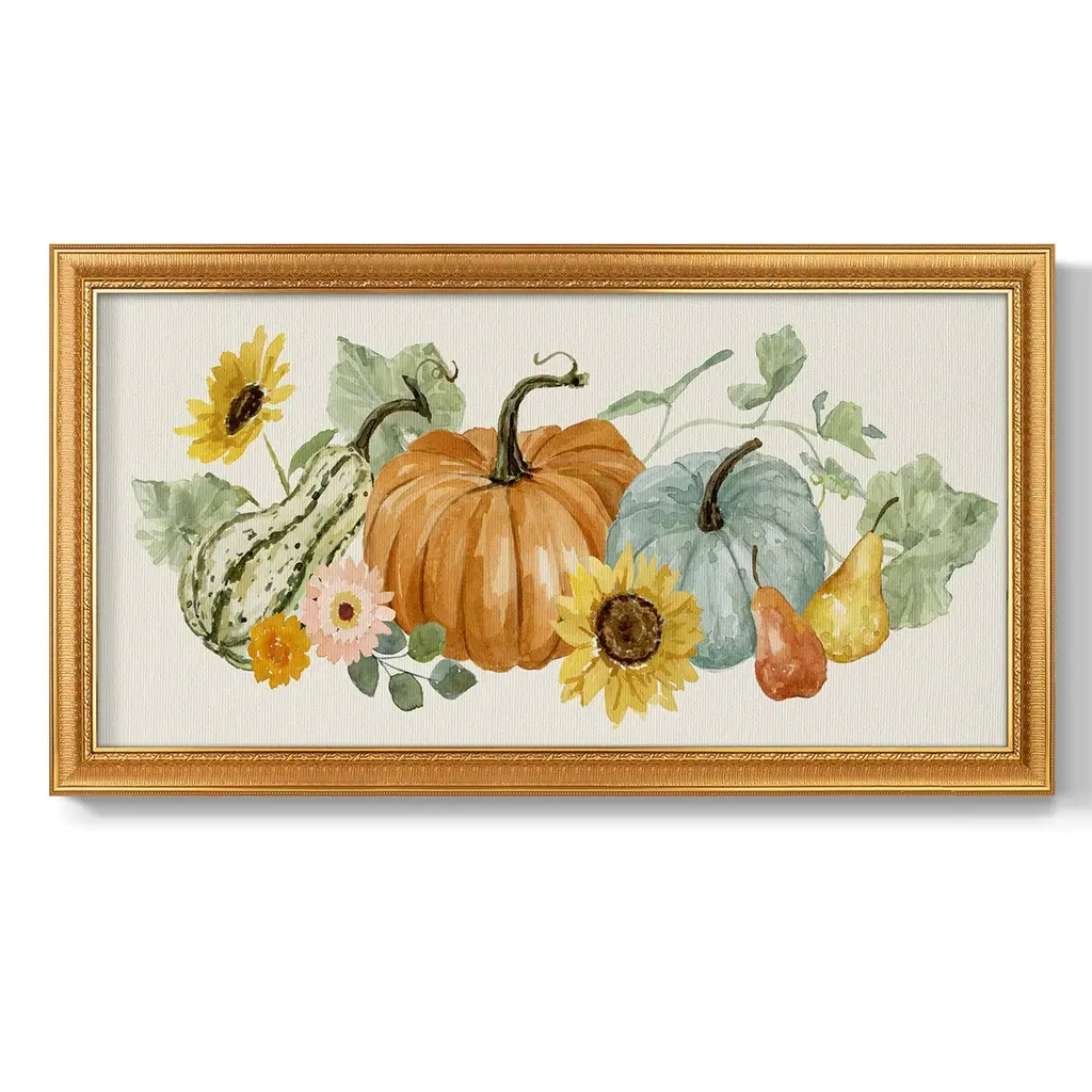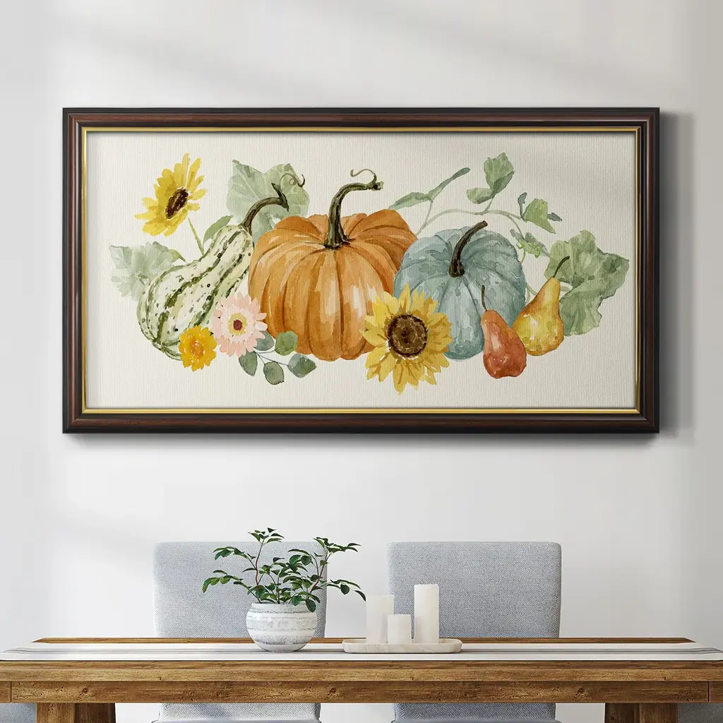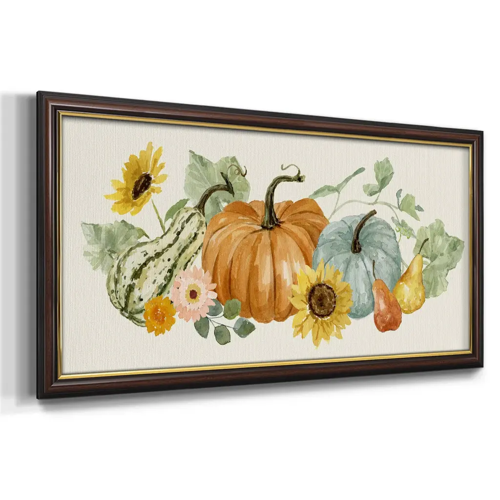Hello Autumn Collection D Premium Framed Canvas- Ready to Hang A Premium Framed Canvas created to last. Framed in distressed wood and available in an array of sizes and colors Featuring a beveled a solid wood stretcher bar, each piece comes ready to hand 3 SIZES AVAILABLE 21''X37'' - Overall Size 25''X45'' - Overall Size 29''x53'' - Overall Size Each piece is made to order. Each piece comes with hanging hardware. Made in the USA Ready to Hang Giclee Paper Print Acrylic Glass Beveled Matt Board