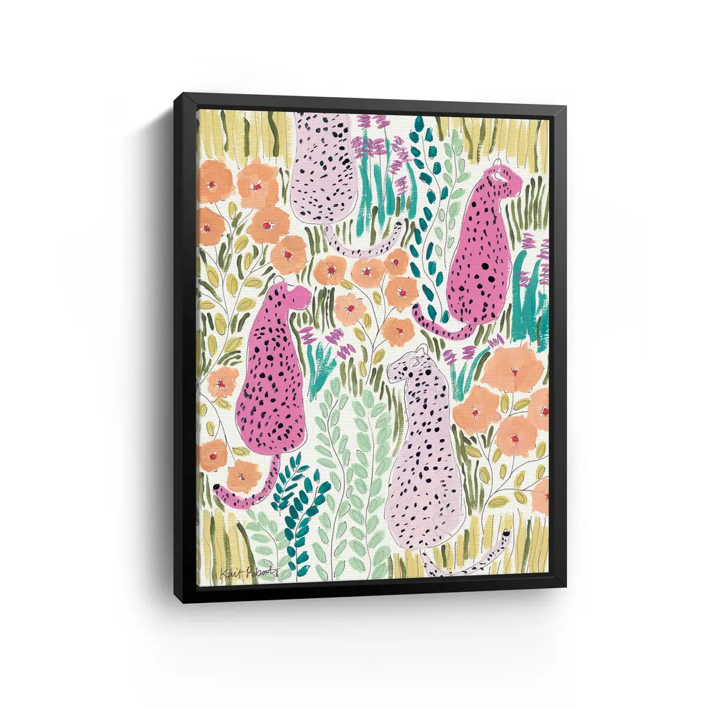 Hello Cheetah - Pink Canvas Giclee - Framed / Dark Walnut / 24x32