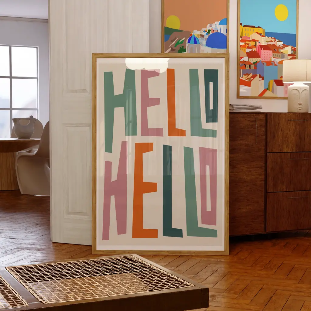 Hello Hello Typography Art Print - A2Introducing our "Hello Hello" Typography Print, a delightful and charming addition to any home or office space. With its bold and playful design, this print adds a touch of fun to your decor. All prints are digitally designed by myself and printed to order.Smooth fine art 230 gsm matte card. Printed with vivid colour and detail. Sold without a frame.