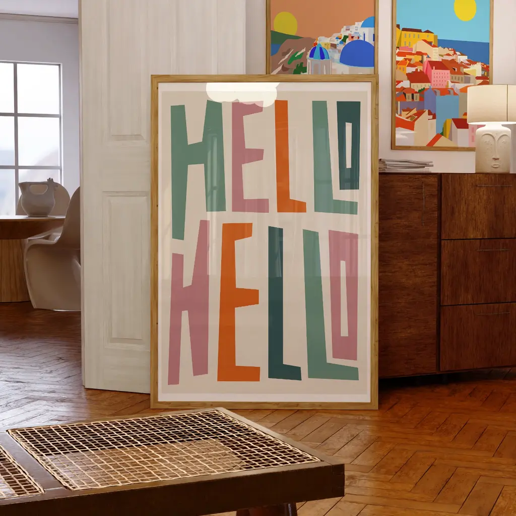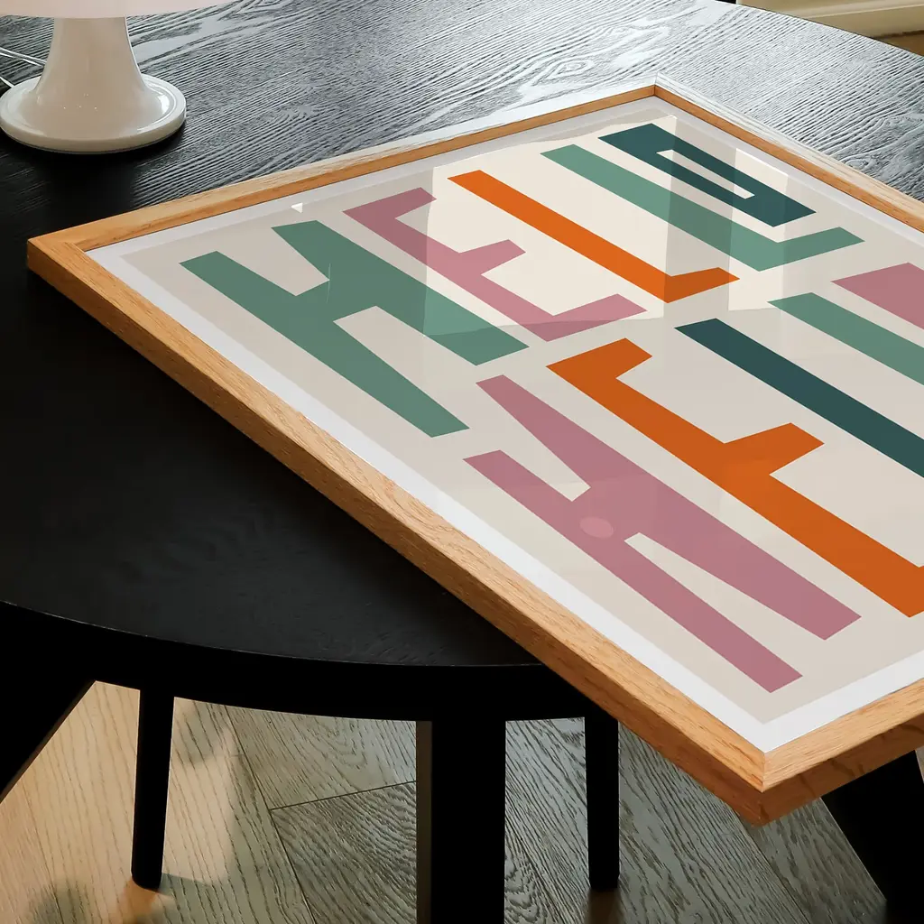 Hello Hello Typography Art Print - A3Introducing our "Hello Hello" Typography Print, a delightful and charming addition to any home or office space. With its bold and playful design, this print adds a touch of fun to your decor. All prints are digitally designed by myself and printed to order.Smooth fine art 230 gsm matte card. Printed with vivid colour and detail. Sold without a frame.