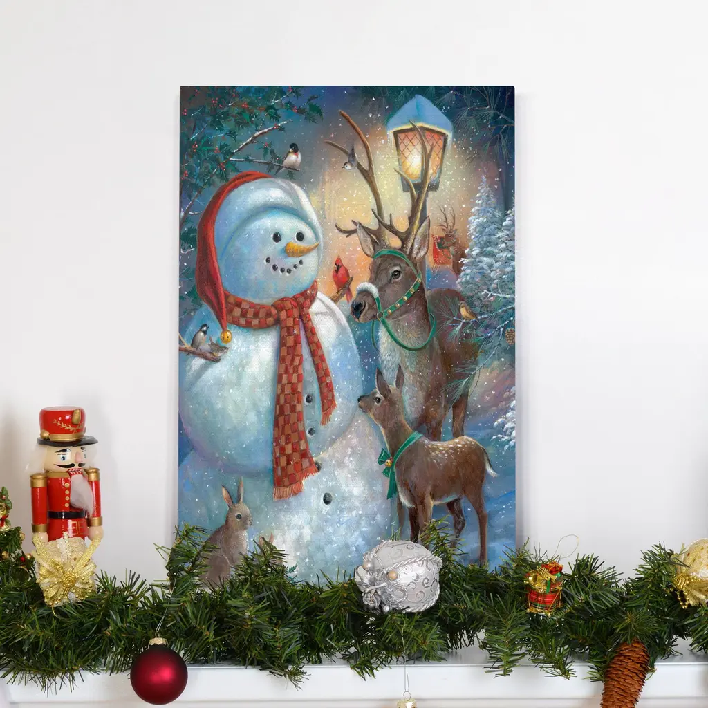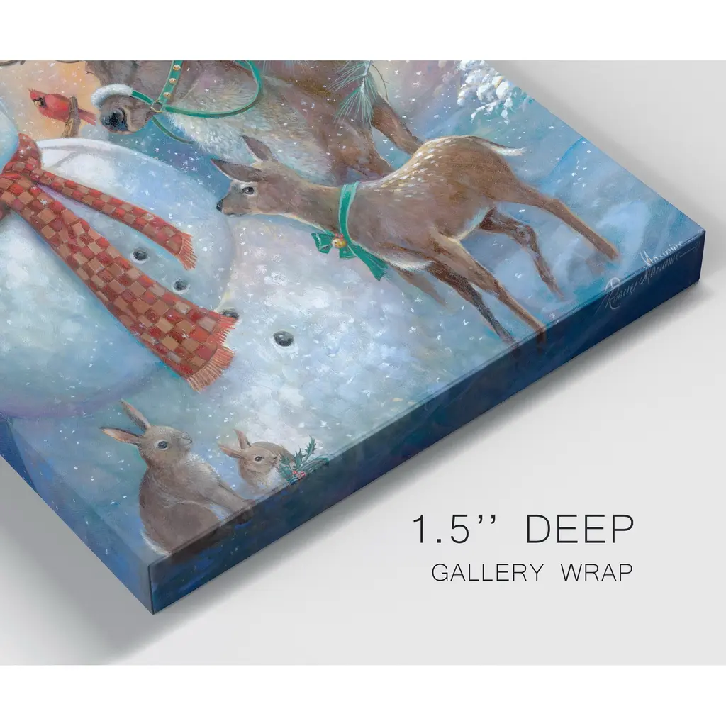 Hello Mr. Snowman!-Premium Gallery Wrapped Canvas - Ready to Hang A premium hand stretched gallery wrapped canvas print created to last. Featuring a beveled a solid wood stretcher bar, each piece comes ready to hand 5 SIZES AVAILABLE 8''X12'' - Overall Size 16''x20'' - Overall Size 18''x27'' - Overall Size 24''x36'' - Overall Size 32''x48'' - Overall Size Each piece is made to order. Built to Last Each piece comes ready to hang Solid wood stretcher Fade and Water resistant Made domestically