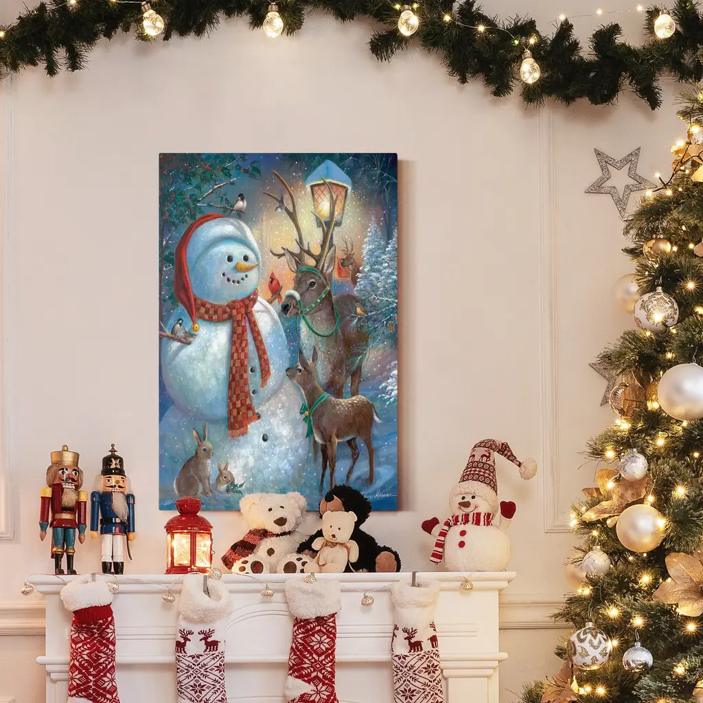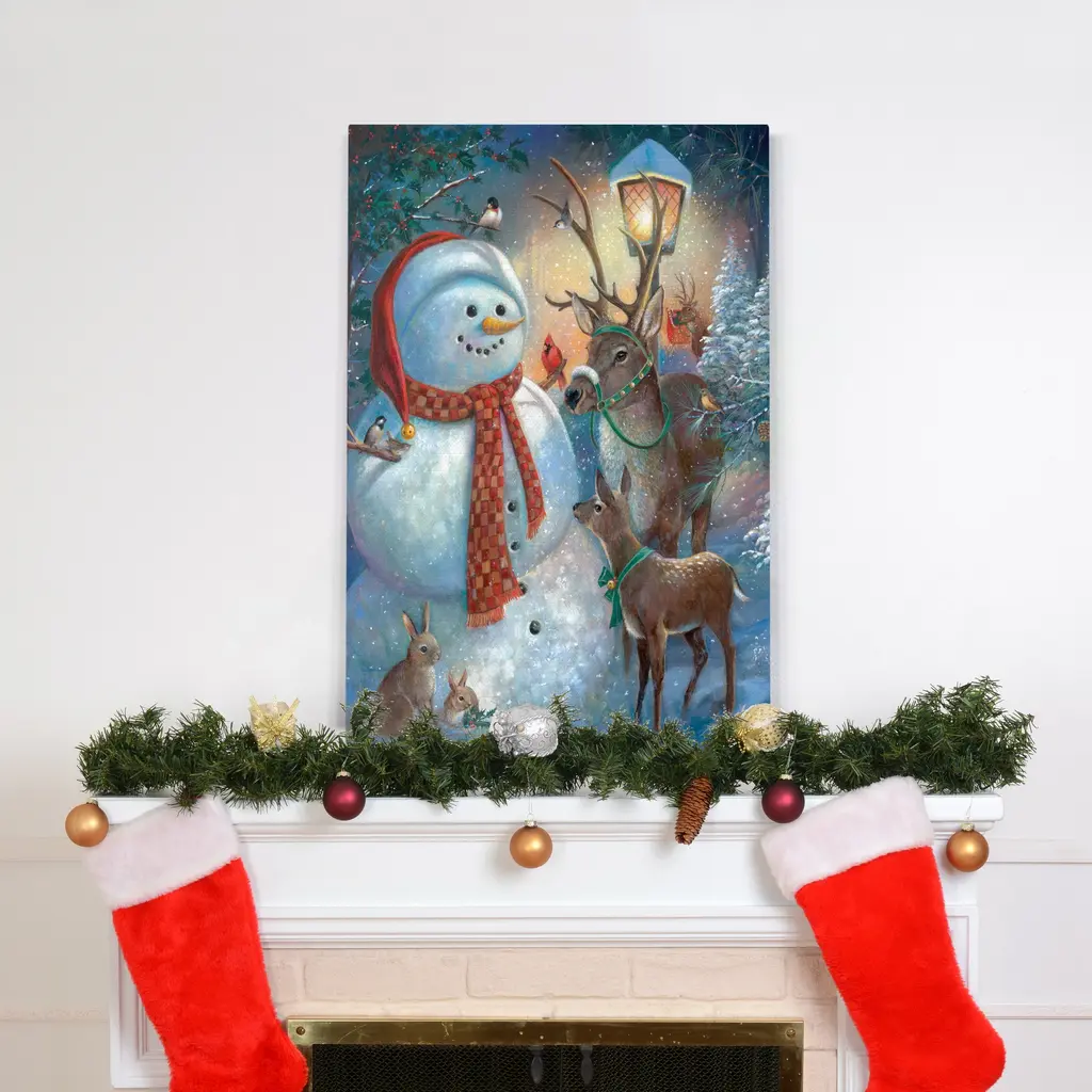 Hello Mr. Snowman!-Premium Gallery Wrapped Canvas - Ready to Hang A premium hand stretched gallery wrapped canvas print created to last. Featuring a beveled a solid wood stretcher bar, each piece comes ready to hand 5 SIZES AVAILABLE 8''X12'' - Overall Size 16''x20'' - Overall Size 18''x27'' - Overall Size 24''x36'' - Overall Size 32''x48'' - Overall Size Each piece is made to order. Built to Last Each piece comes ready to hang Solid wood stretcher Fade and Water resistant Made domestically