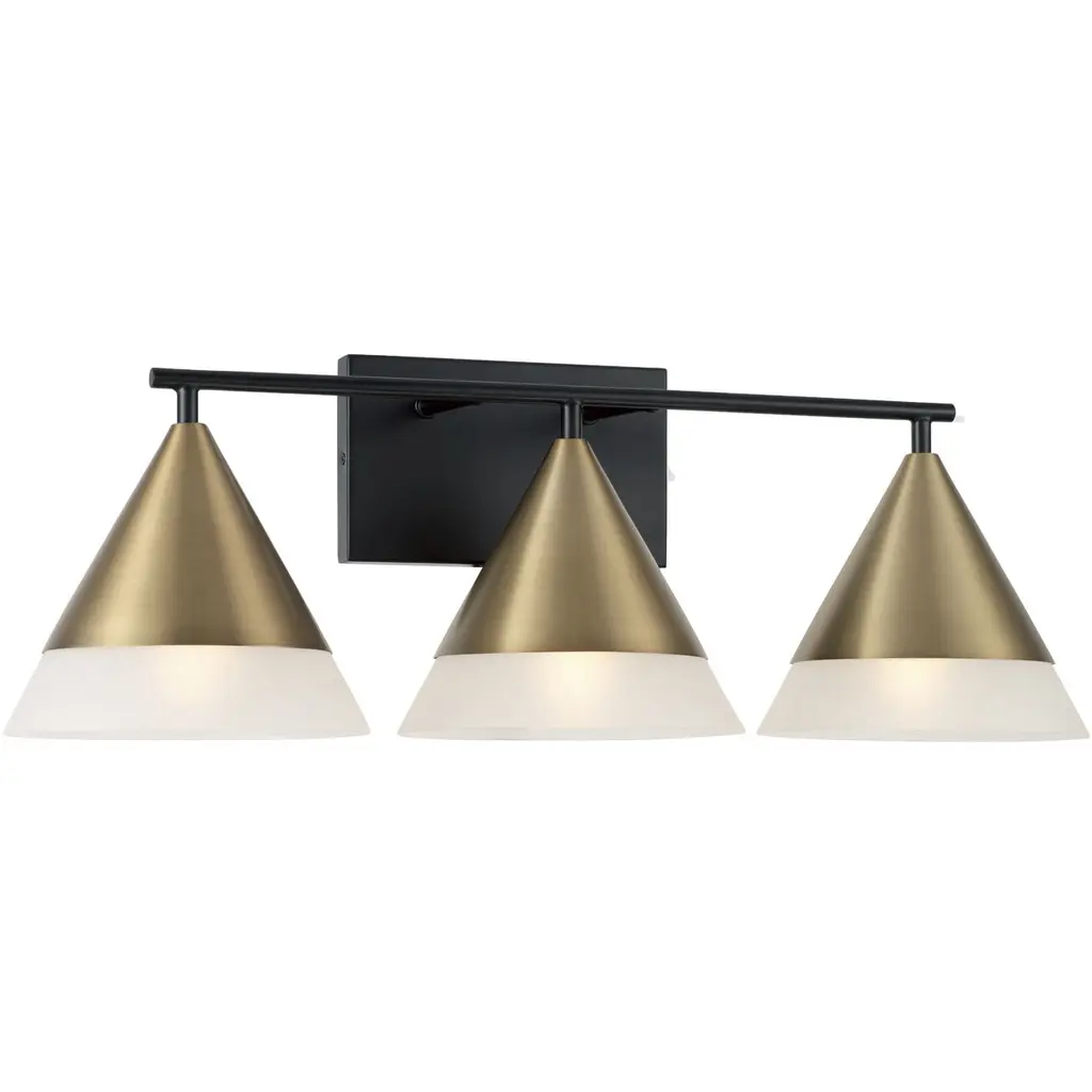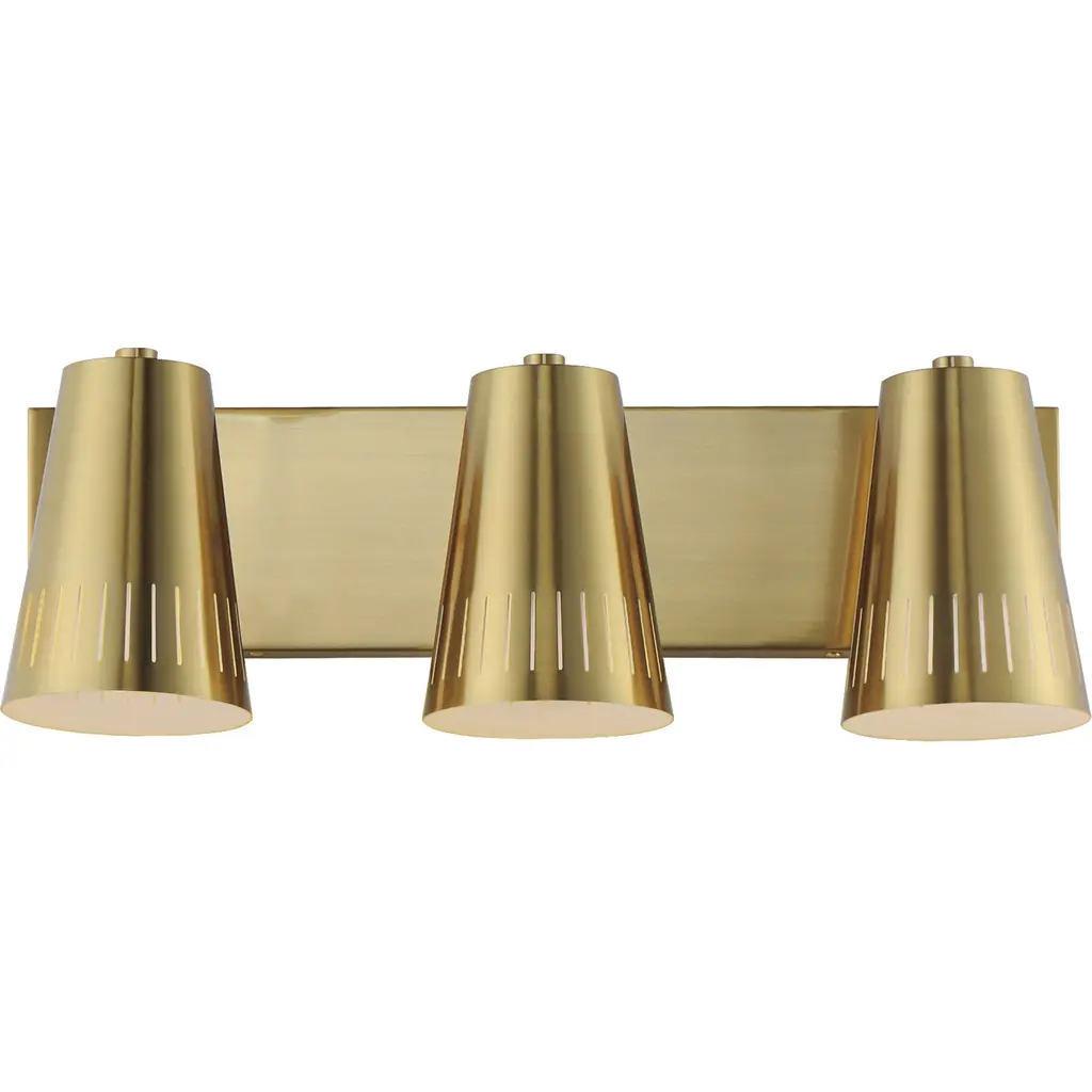 The Helsinki Vanity Light from Maxim Lighting is a stunning, retro re-imagining that pays tribute to Scandinavian mid-century modern design. Inspired by perforated brass shades, this fixture seamlessly blends vintage charm and transitional aesthetics. Helsinki features conical steel shades adorned with meticulously crafted cutouts along the edge of the shade. These artistic perforations contribute to the fixture's distinctive appearance and allow LED light to elegantly filter through, creating a lovely display.