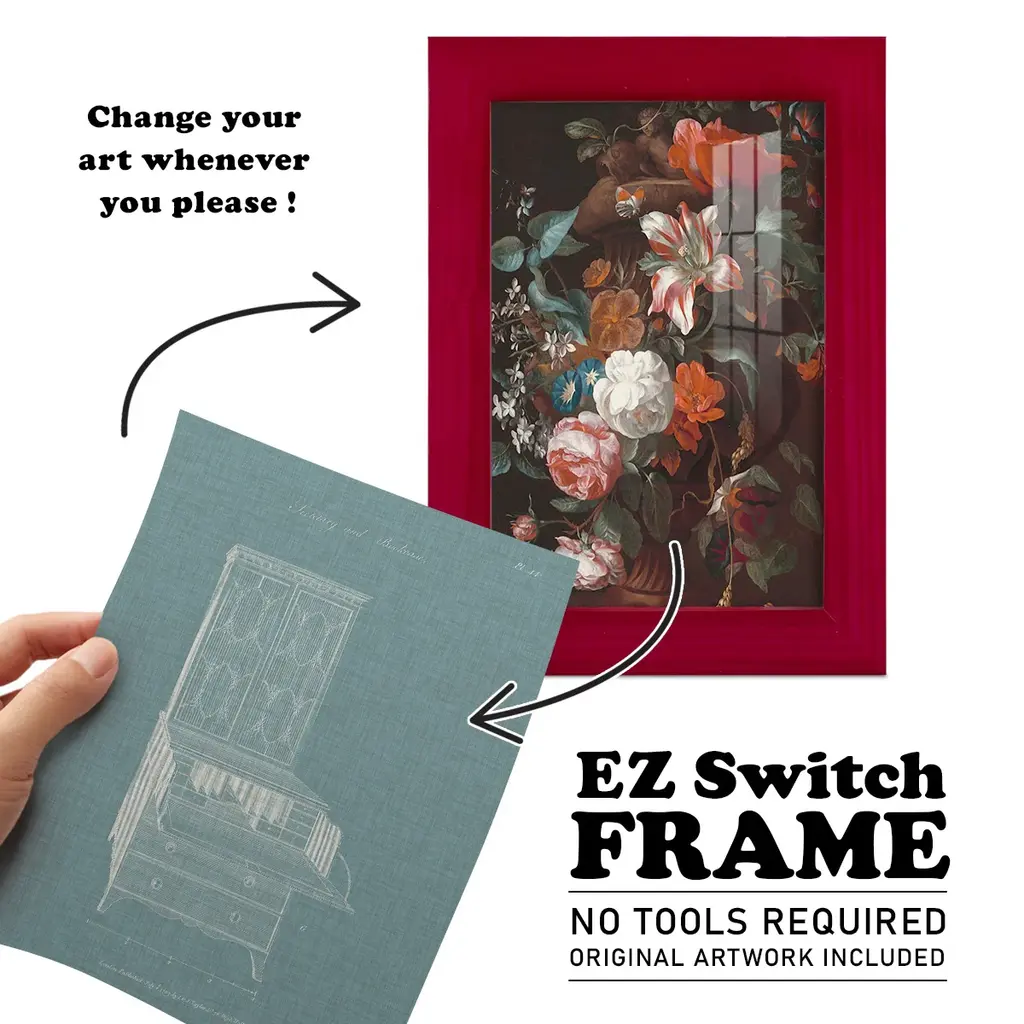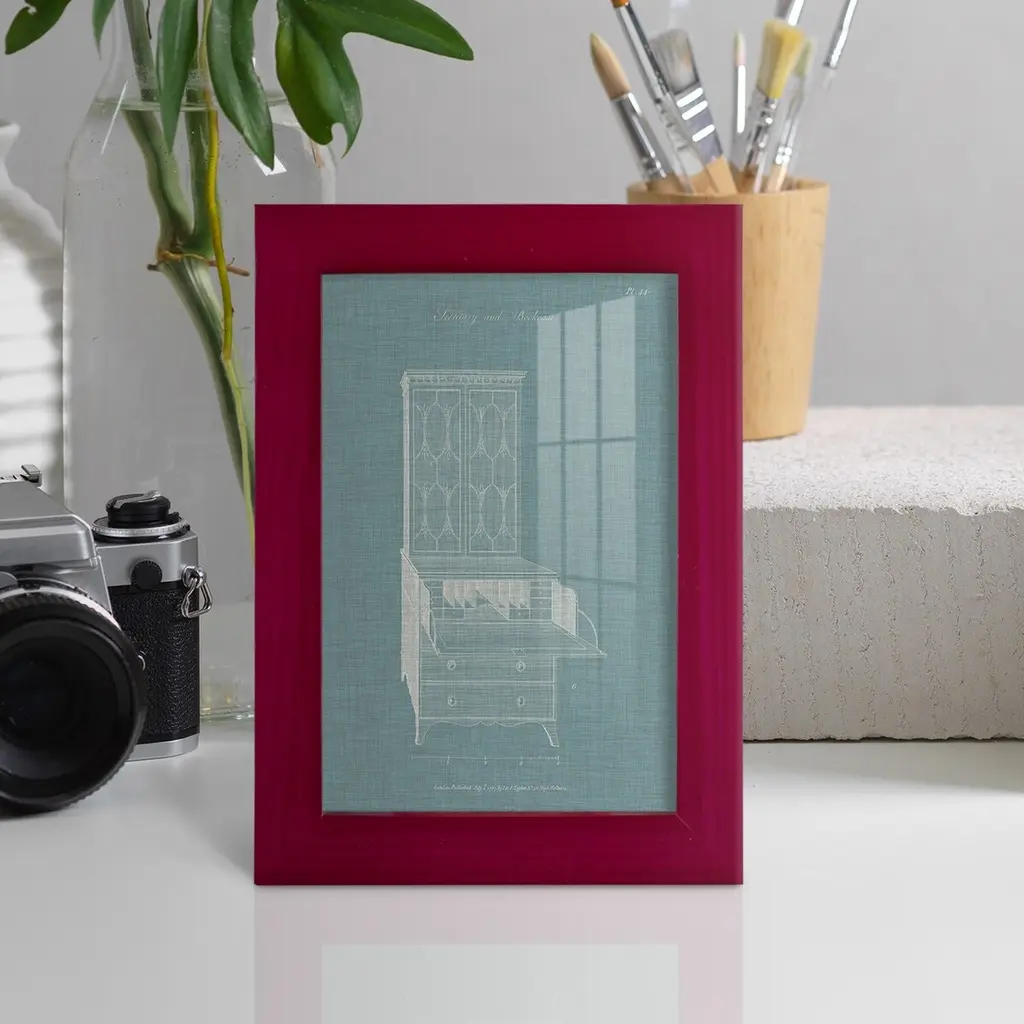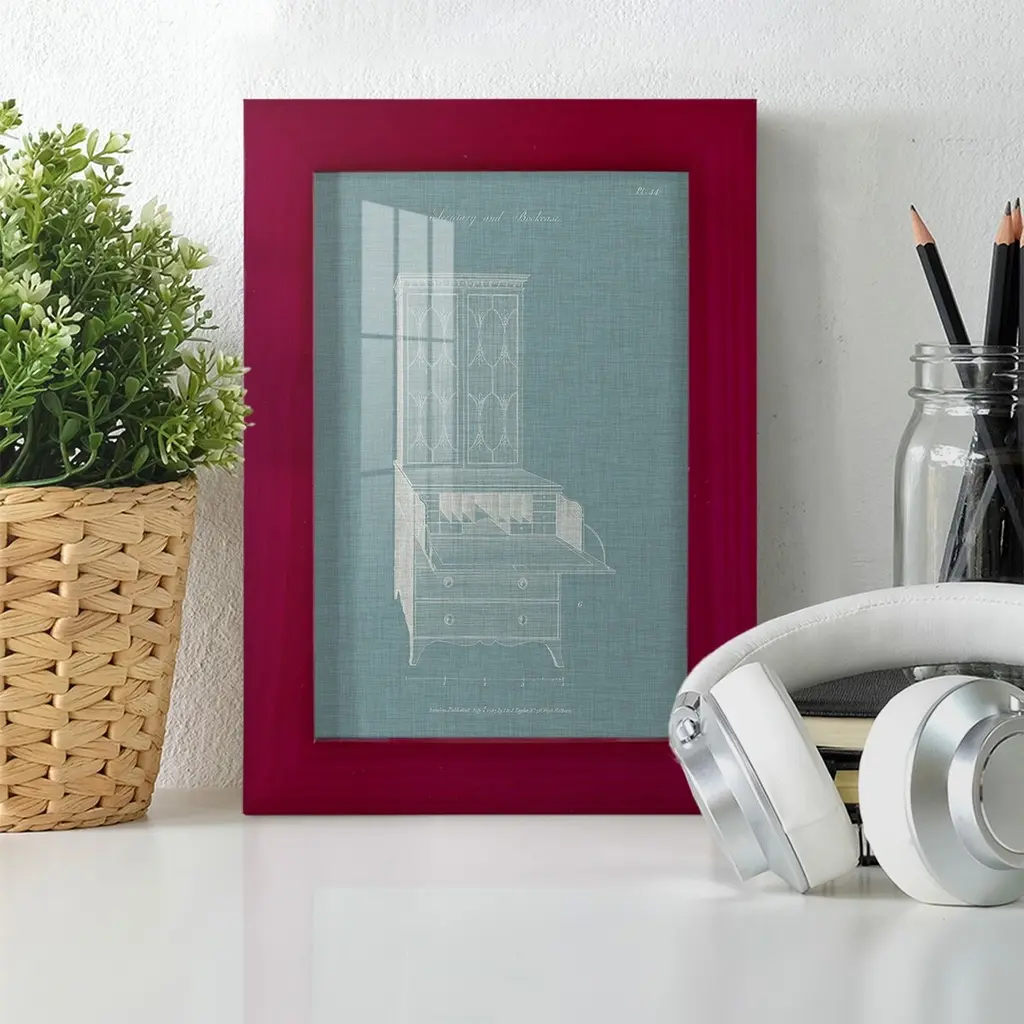 Hepplewhite Desk & Bookcase I -EZ SWITCH Framed Print w/glass-Cherry Red A delightful, framed print. Featuring a solid wood frame with real wood glass. This premium print is giclee quality. In addition, every frame features a removable back and table top stand. This allows you to change your art in the future or to just stand the art on a table for a new look. We are sure you'll enjoy our new series of EZ SWITCH Framed Art. Solid Wood Frame Real Glass Removable / Replaceable Art Built in Tabletop Stand Sizes range from 4x6 up to 12x15 - buy just one or pair them up as sets as you see fit.