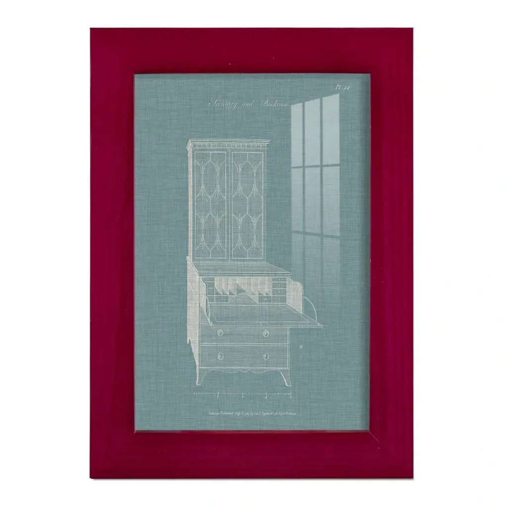 Hepplewhite Desk & Bookcase I -Framed Print W/glass-Cherry Red - 4X6 - Natural