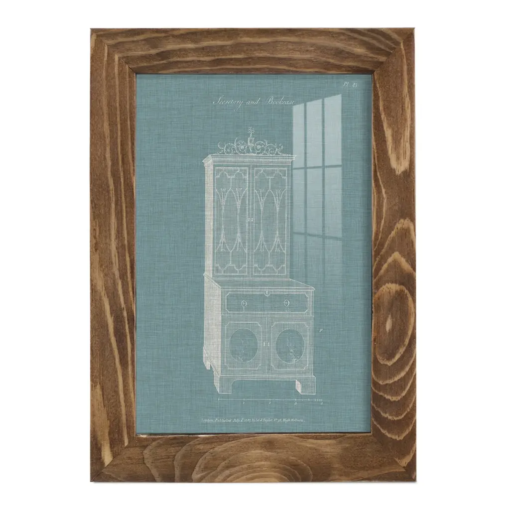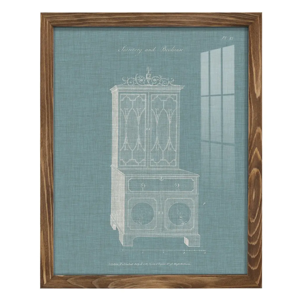 Hepplewhite Desk & Bookcase Iii -Framed Print W/glass-Cherry Red - 12x15 - Walnut