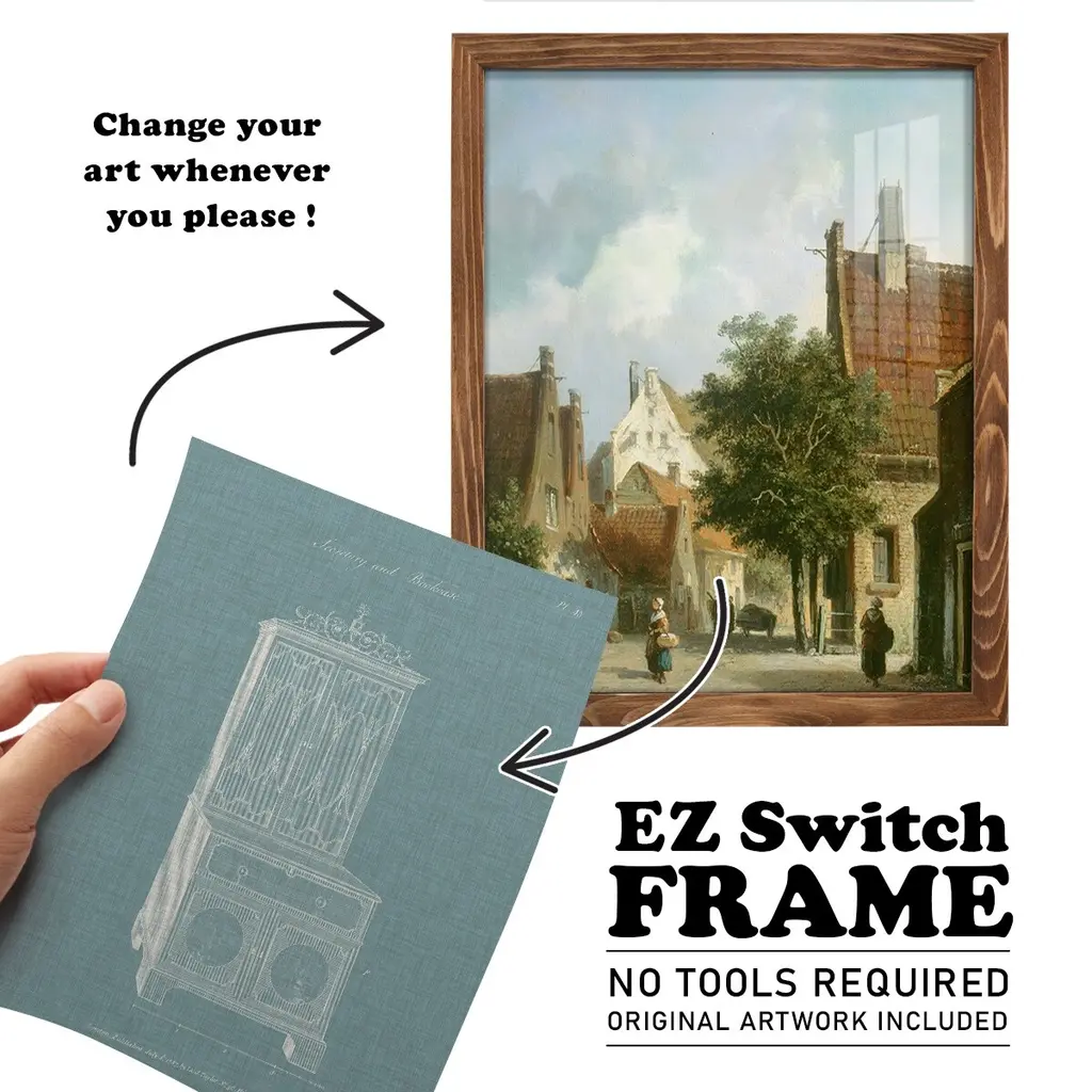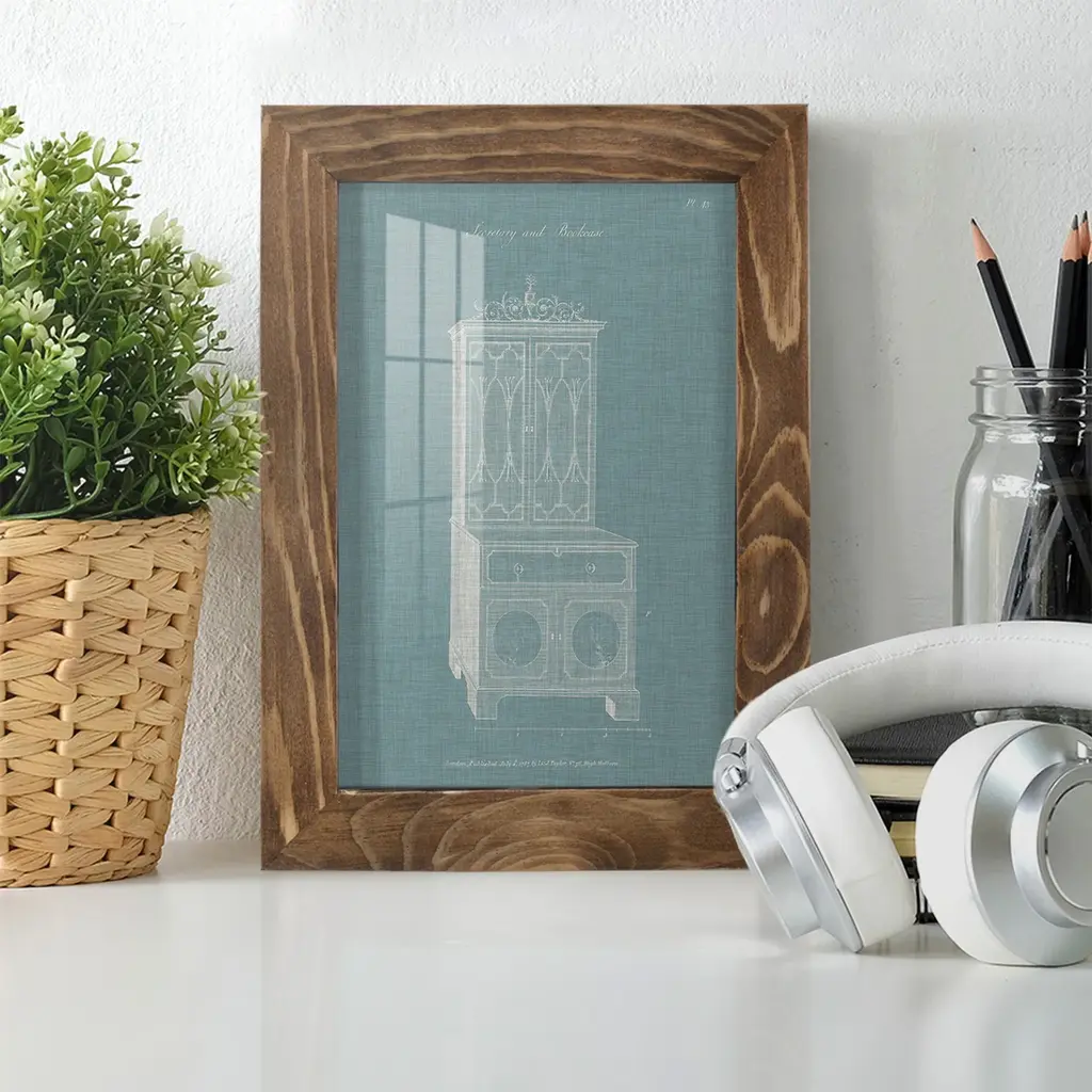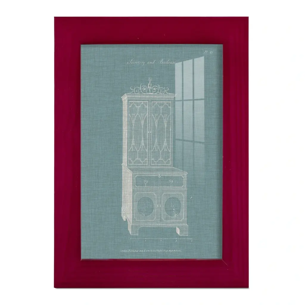 Hepplewhite Desk & Bookcase III -EZ SWITCH Framed Print w/glass-Cherry Red A delightful, framed print. Featuring a solid wood frame with real wood glass. This premium print is giclee quality. In addition, every frame features a removable back and table top stand. This allows you to change your art in the future or to just stand the art on a table for a new look. We are sure you'll enjoy our new series of EZ SWITCH Framed Art. Solid Wood Frame Real Glass Removable / Replaceable Art Built in Tabletop Stand Sizes range from 4x6 up to 12x15 - buy just one or pair them up as sets as you see fit.