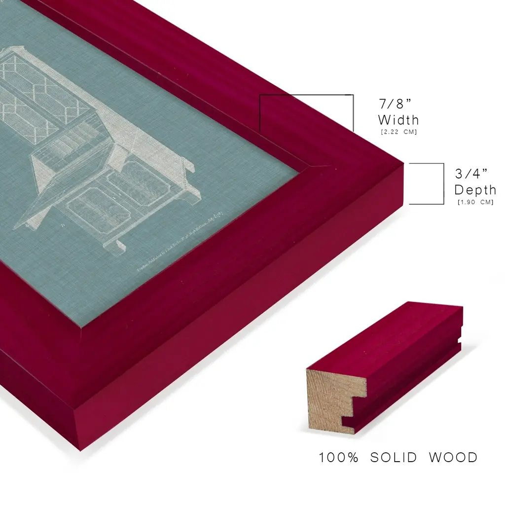 Hepplewhite Desk & Bookcase IV -EZ SWITCH Framed Print w/glass-Cherry Red A delightful, framed print. Featuring a solid wood frame with real wood glass. This premium print is giclee quality. In addition, every frame features a removable back and table top stand. This allows you to change your art in the future or to just stand the art on a table for a new look. We are sure you'll enjoy our new series of EZ SWITCH Framed Art. Solid Wood Frame Real Glass Removable / Replaceable Art Built in Tabletop Stand Sizes range from 4x6 up to 12x15 - buy just one or pair them up as sets as you see fit.