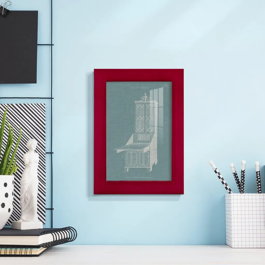 Hepplewhite Desk & Bookcase Iv -Framed Print W/glass-Cherry Red - 4X6 - Blue