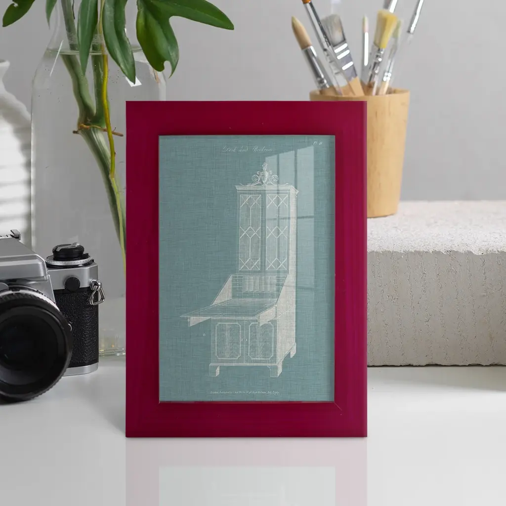 Hepplewhite Desk & Bookcase IV -EZ SWITCH Framed Print w/glass-Cherry Red A delightful, framed print. Featuring a solid wood frame with real wood glass. This premium print is giclee quality. In addition, every frame features a removable back and table top stand. This allows you to change your art in the future or to just stand the art on a table for a new look. We are sure you'll enjoy our new series of EZ SWITCH Framed Art. Solid Wood Frame Real Glass Removable / Replaceable Art Built in Tabletop Stand Sizes range from 4x6 up to 12x15 - buy just one or pair them up as sets as you see fit.