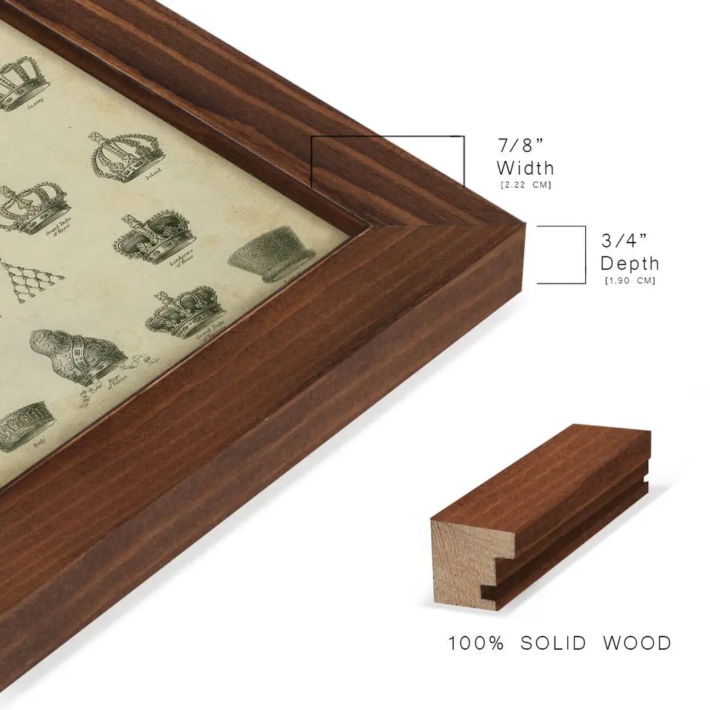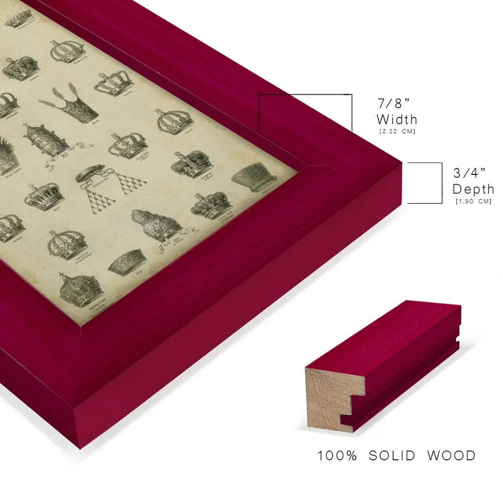 Heraldic Crowns & Coronets II -EZ SWITCH Framed Print w/glass-Cherry Red A delightful, framed print. Featuring a solid wood frame with real wood glass. This premium print is giclee quality. In addition, every frame features a removable back and table top stand. This allows you to change your art in the future or to just stand the art on a table for a new look. We are sure you'll enjoy our new series of EZ SWITCH Framed Art. Solid Wood Frame Real Glass Removable / Replaceable Art Built in Tabletop Stand Sizes range from 4x6 up to 12x15 - buy just one or pair them up as sets as you see fit.