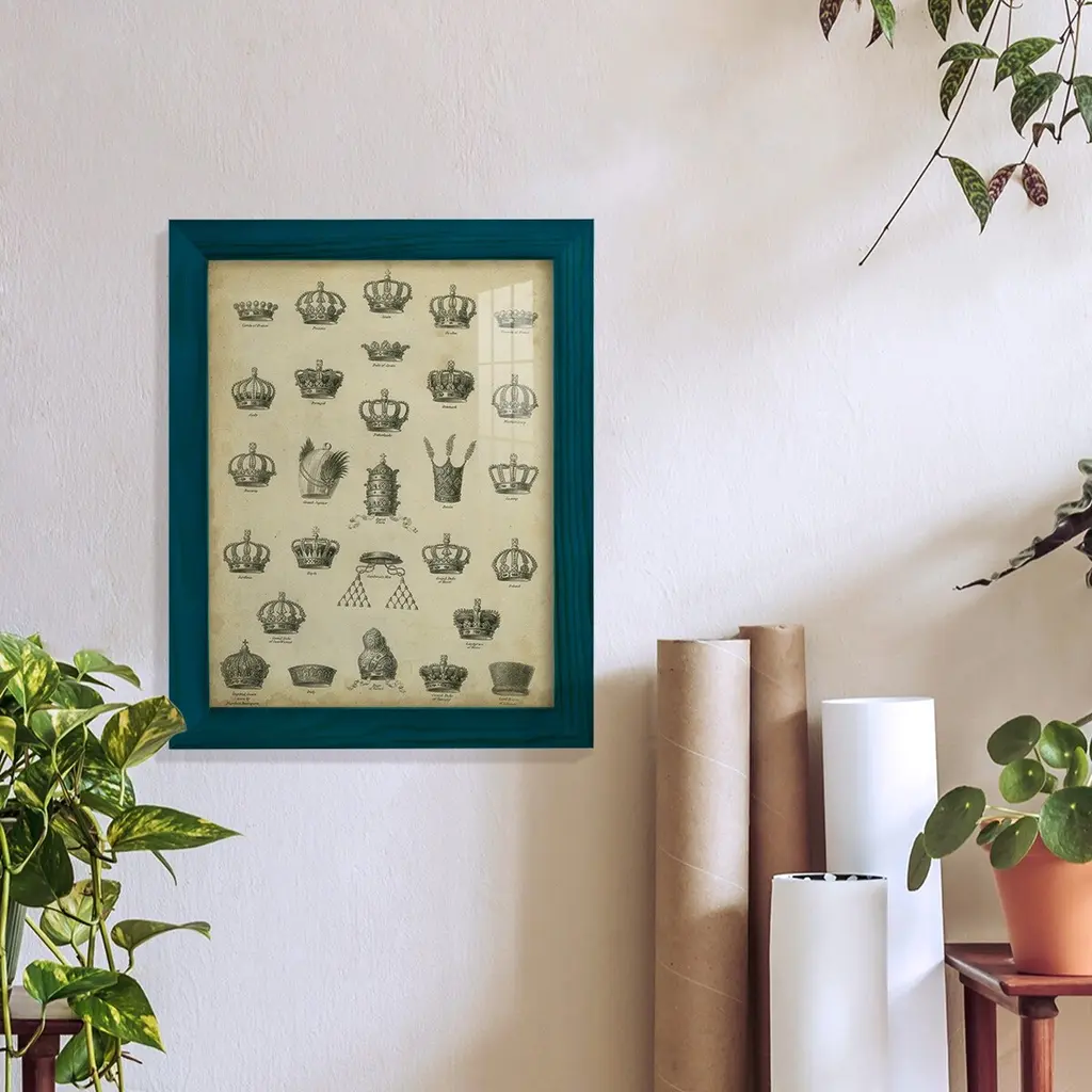 Heraldic Crowns & Coronets II -EZ SWITCH Framed Print w/glass-Cherry Red A delightful, framed print. Featuring a solid wood frame with real wood glass. This premium print is giclee quality. In addition, every frame features a removable back and table top stand. This allows you to change your art in the future or to just stand the art on a table for a new look. We are sure you'll enjoy our new series of EZ SWITCH Framed Art. Solid Wood Frame Real Glass Removable / Replaceable Art Built in Tabletop Stand Sizes range from 4x6 up to 12x15 - buy just one or pair them up as sets as you see fit.