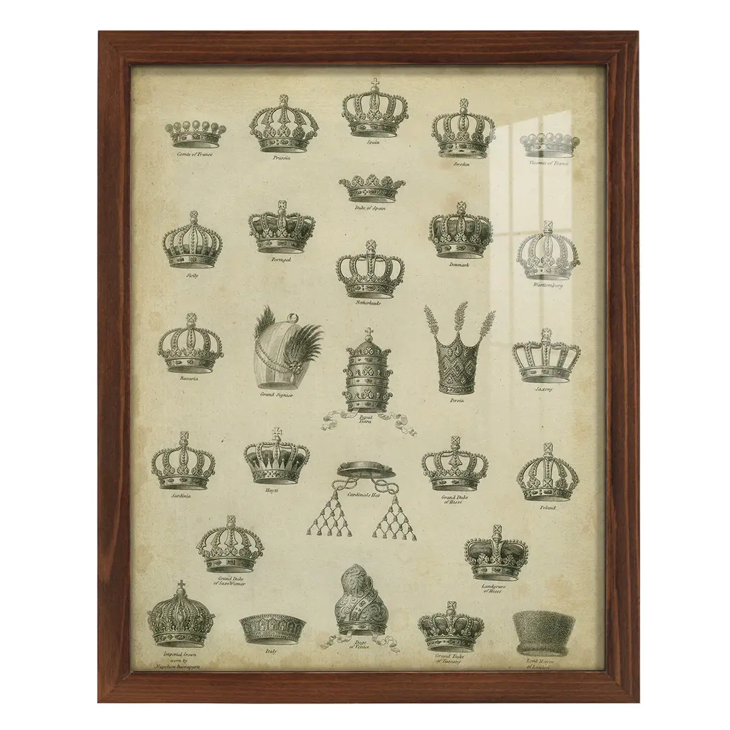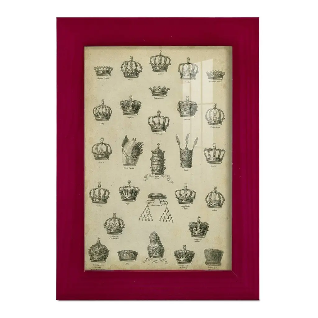 Heraldic Crowns & Coronets II -EZ SWITCH Framed Print w/glass-Cherry Red A delightful, framed print. Featuring a solid wood frame with real wood glass. This premium print is giclee quality. In addition, every frame features a removable back and table top stand. This allows you to change your art in the future or to just stand the art on a table for a new look. We are sure you'll enjoy our new series of EZ SWITCH Framed Art. Solid Wood Frame Real Glass Removable / Replaceable Art Built in Tabletop Stand Sizes range from 4x6 up to 12x15 - buy just one or pair them up as sets as you see fit.
