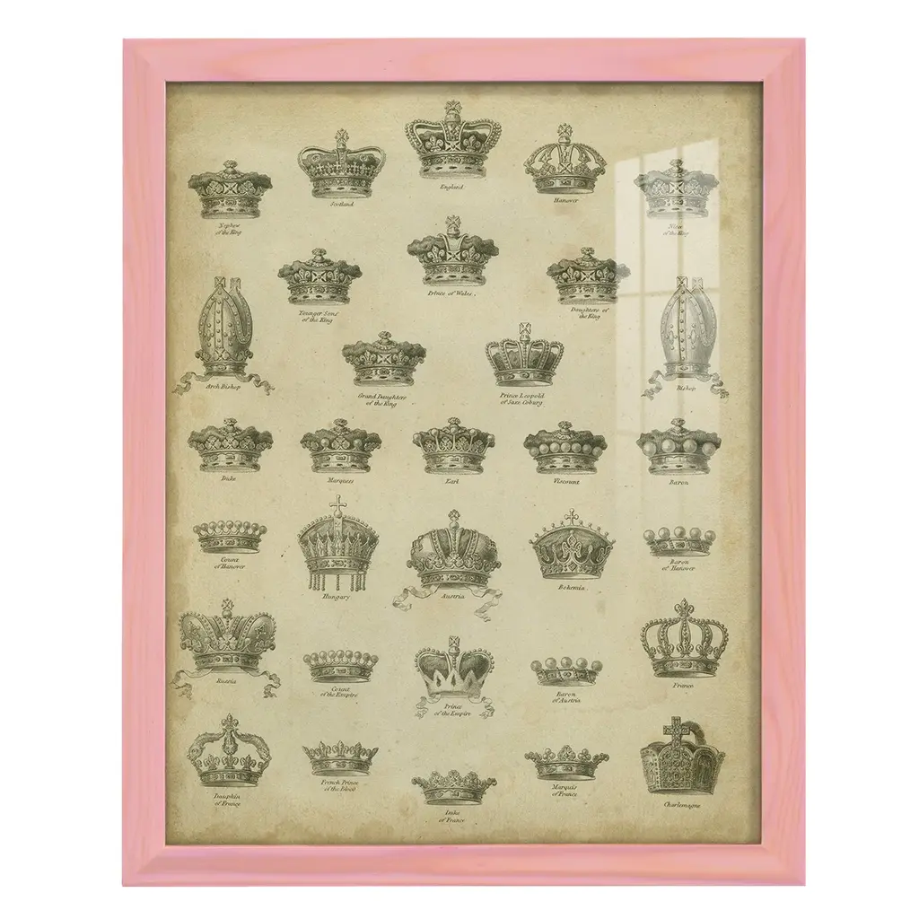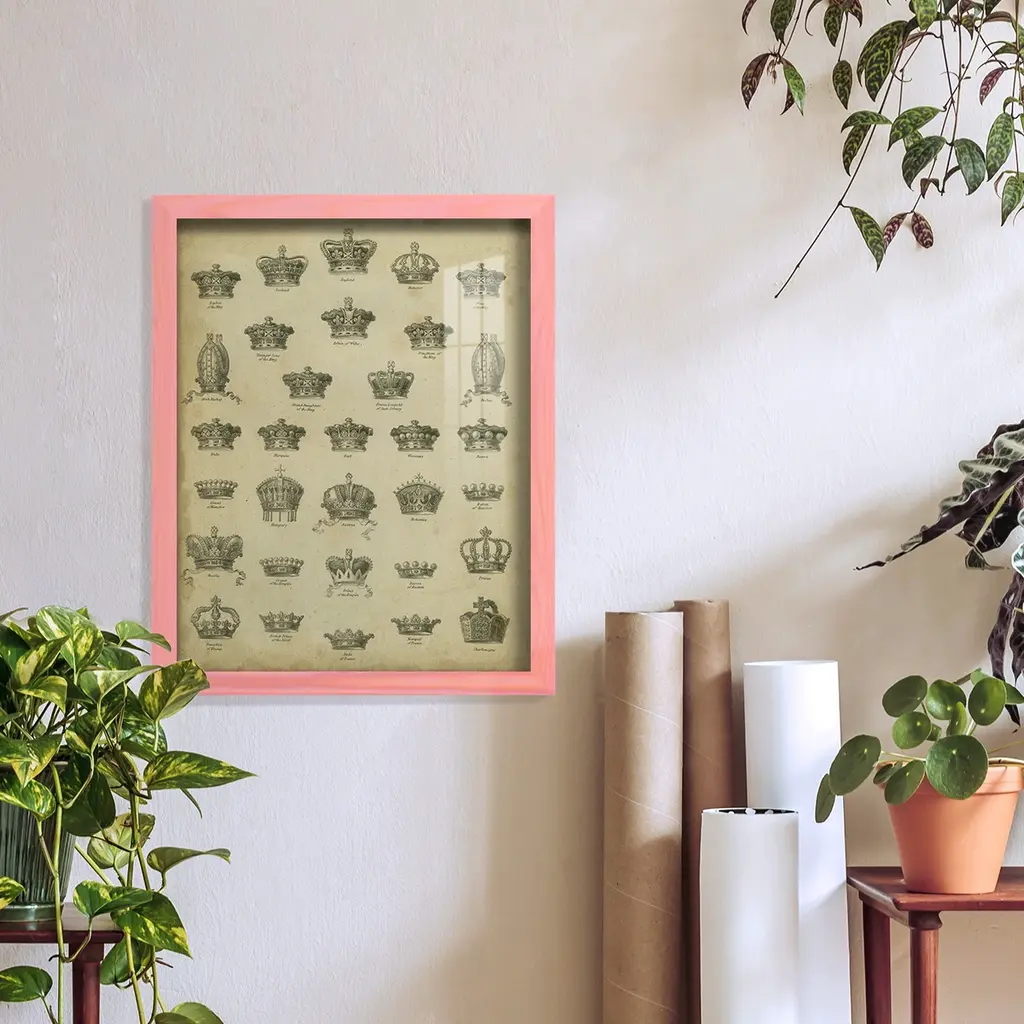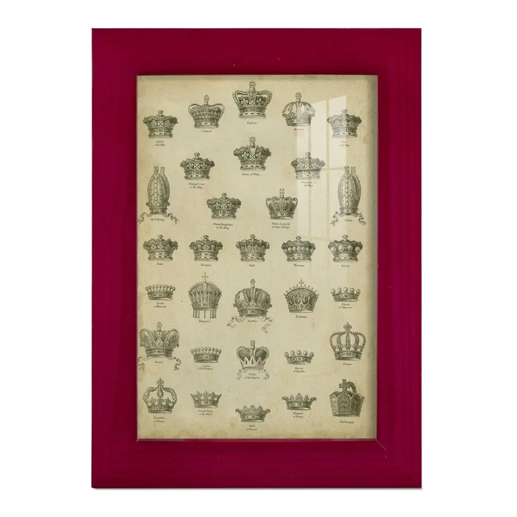 Heraldic Crowns & Coronets V -EZ SWITCH Framed Print w/glass-Cherry Red A delightful, framed print. Featuring a solid wood frame with real wood glass. This premium print is giclee quality. In addition, every frame features a removable back and table top stand. This allows you to change your art in the future or to just stand the art on a table for a new look. We are sure you'll enjoy our new series of EZ SWITCH Framed Art. Solid Wood Frame Real Glass Removable / Replaceable Art Built in Tabletop Stand Sizes range from 4x6 up to 12x15 - buy just one or pair them up as sets as you see fit.