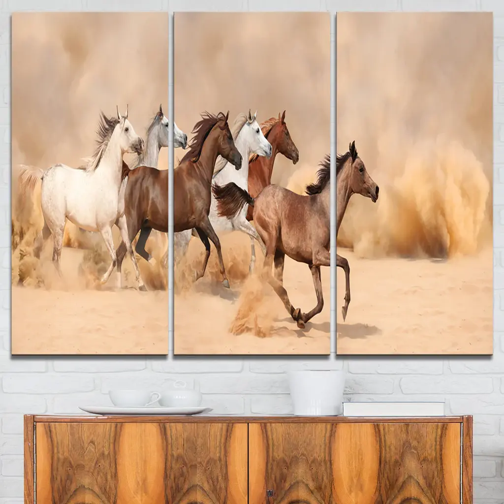 "Herd Gallops In Sand Storm" Photography Metal Wall Art, 3 Panels, 36"x28"