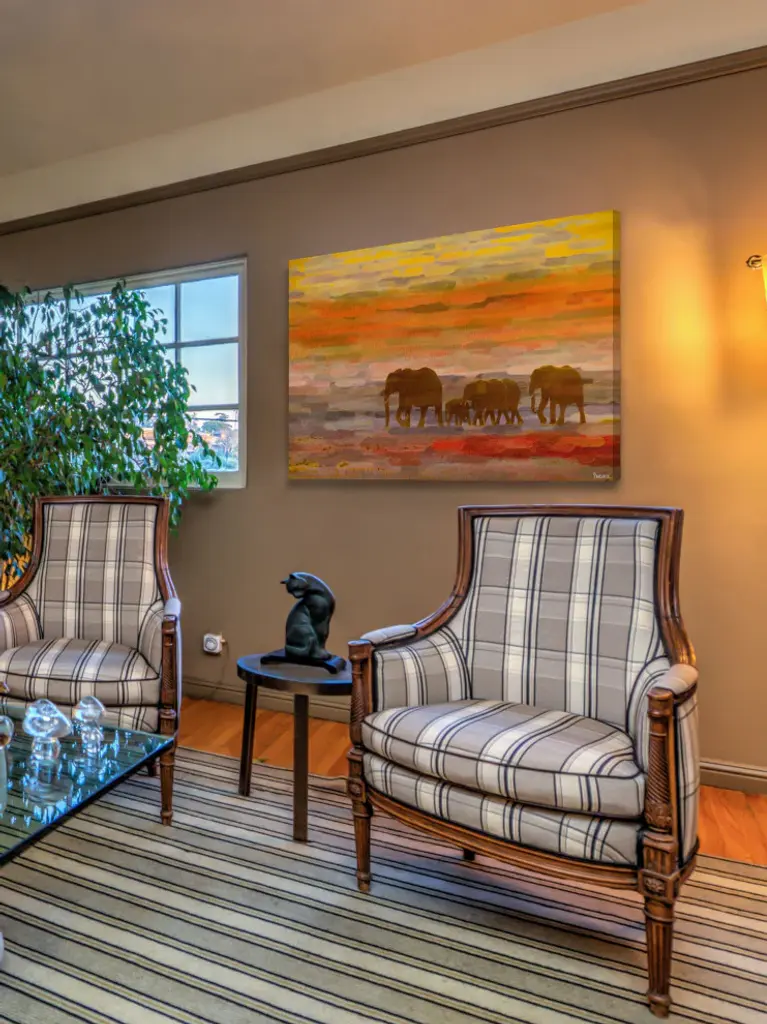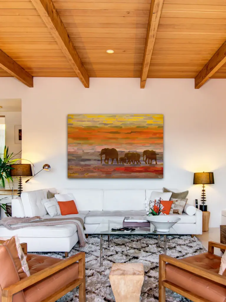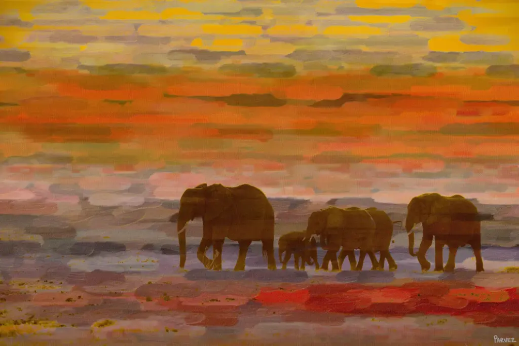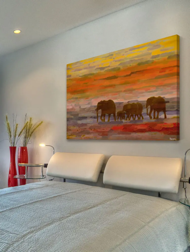 Striking and unique, the "Herd Walking" Print on Canvas by Parvez Taj will bring your walls to life. Printed on canvas, this 24 inch wide by 16 inch tall contemporary artwork will make a statement in any living room, dining room, or bedroom.- Fine art canvas print by Parvez Taj- Professionally hand stretched- Gallery wrapped in sustainable, non-warping wood- Arrives ready to hang- Made in the USA- Includes a certificate of authenticity- Artist signature on the front