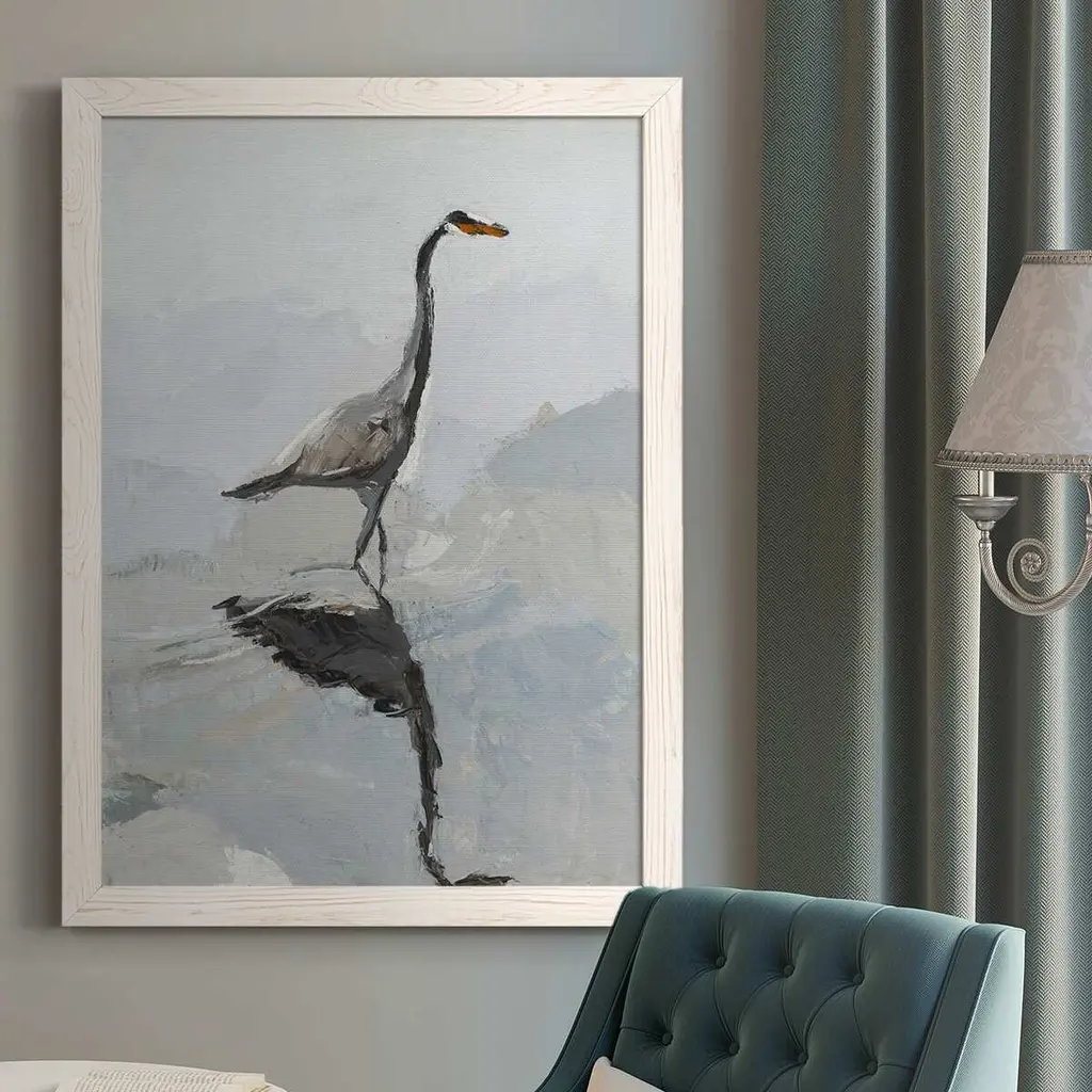 Heron-Premium Framed Canvas - Ready To Hang - 27.5x37.5 - Walnut