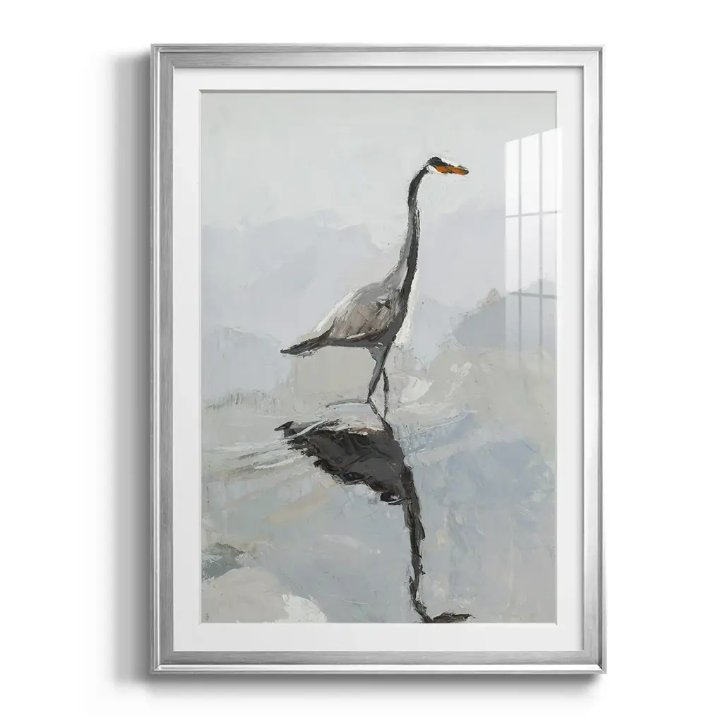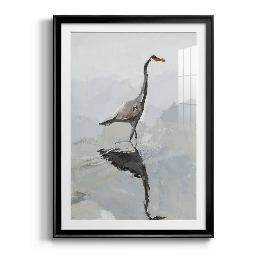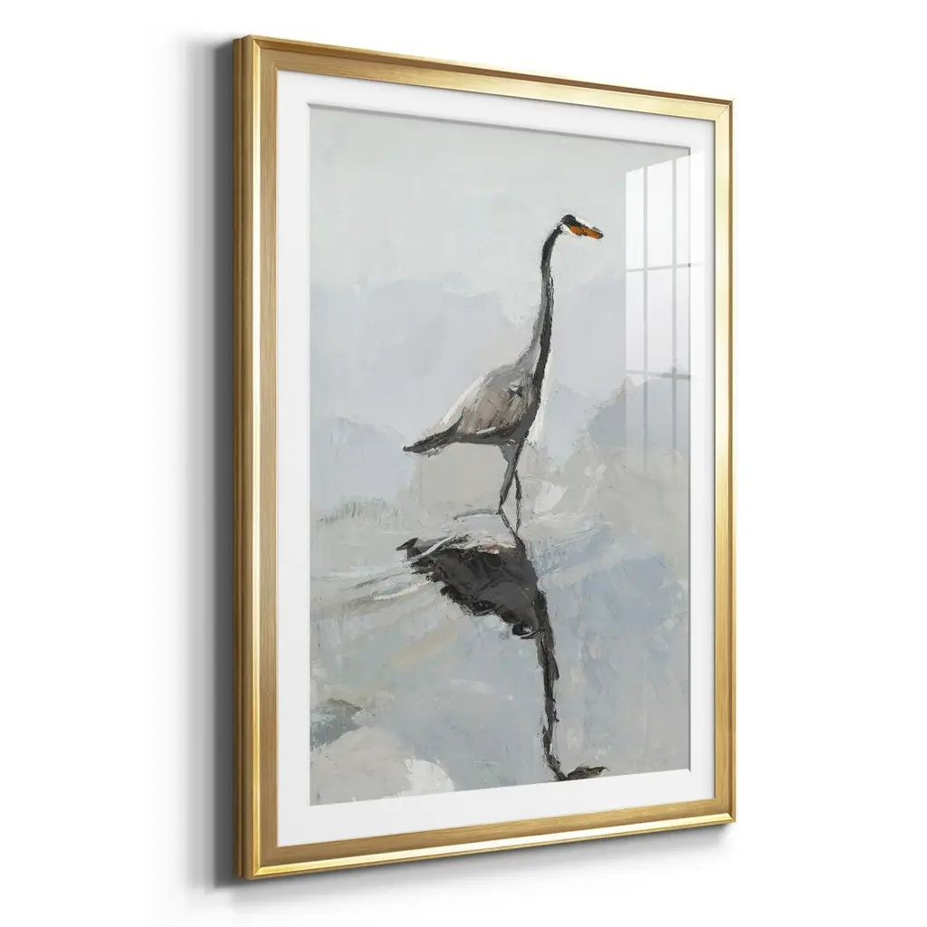 Heron Premium Framed Print - Ready to Hang A Premium Framed Print created to last. Framed in distressed wood and available in an array of sizes and colors Featuring a beveled a solid wood stretcher bar, each piece comes ready to hand 4 SIZES AVAILABLE 30.5''X42.5'' - Overall Size 26.5'X36.5'' - Overall Size 22.5''x30.5'' - Overall Size 18.5''x24.5'' - Overall Size Each piece is made to order. Each piece comes with hanging hardware. Made in the USA Ready to Hang Giclee Paper Print Acrylic Glass Beveled Matt Board