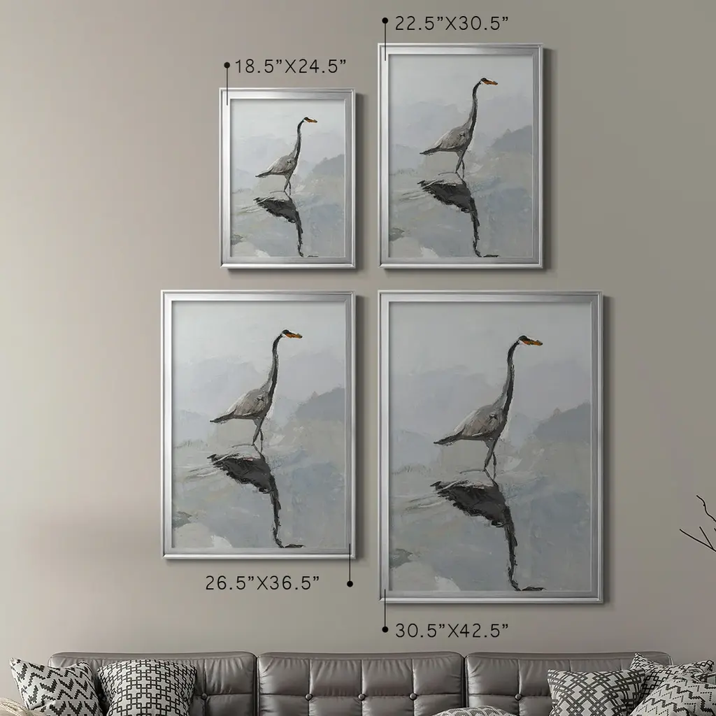Heron Premium Framed Print - Ready to Hang A Premium Framed Print created to last. Framed in distressed wood and available in an array of sizes and colors Featuring a beveled a solid wood stretcher bar, each piece comes ready to hand 4 SIZES AVAILABLE 30.5''X42.5'' - Overall Size 26.5'X36.5'' - Overall Size 22.5''x30.5'' - Overall Size 18.5''x24.5'' - Overall Size Each piece is made to order. Each piece comes with hanging hardware. Made in the USA Ready to Hang