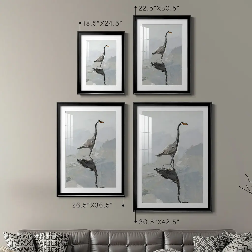 Heron Premium Framed Print - Ready to Hang A Premium Framed Print created to last. Framed in distressed wood and available in an array of sizes and colors Featuring a beveled a solid wood stretcher bar, each piece comes ready to hand 4 SIZES AVAILABLE 30.5''X42.5'' - Overall Size 26.5'X36.5'' - Overall Size 22.5''x30.5'' - Overall Size 18.5''x24.5'' - Overall Size Each piece is made to order. Each piece comes with hanging hardware. Made in the USA Ready to Hang Giclee Paper Print Acrylic Glass Beveled Matt Board