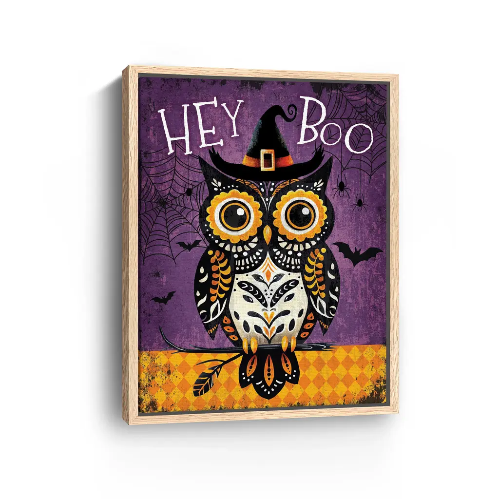 Hey Boo Owl Canvas Giclee - Framed / Dark Walnut / 30x40