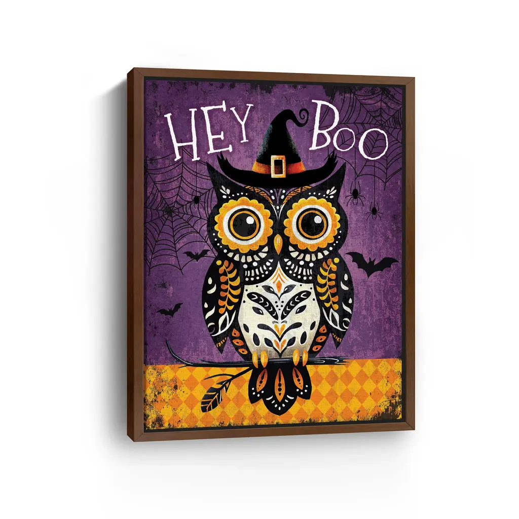 Hey Boo Owl Canvas Giclee - Framed / Oak / 18x24