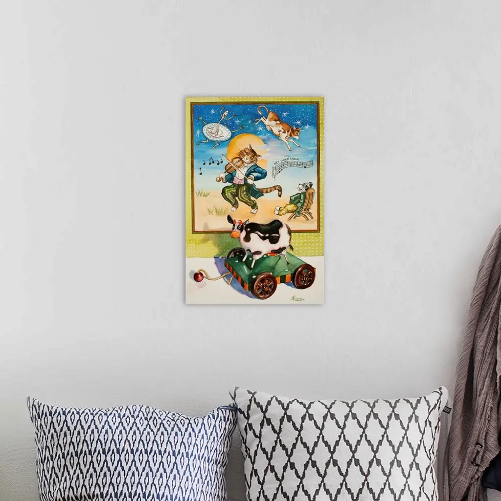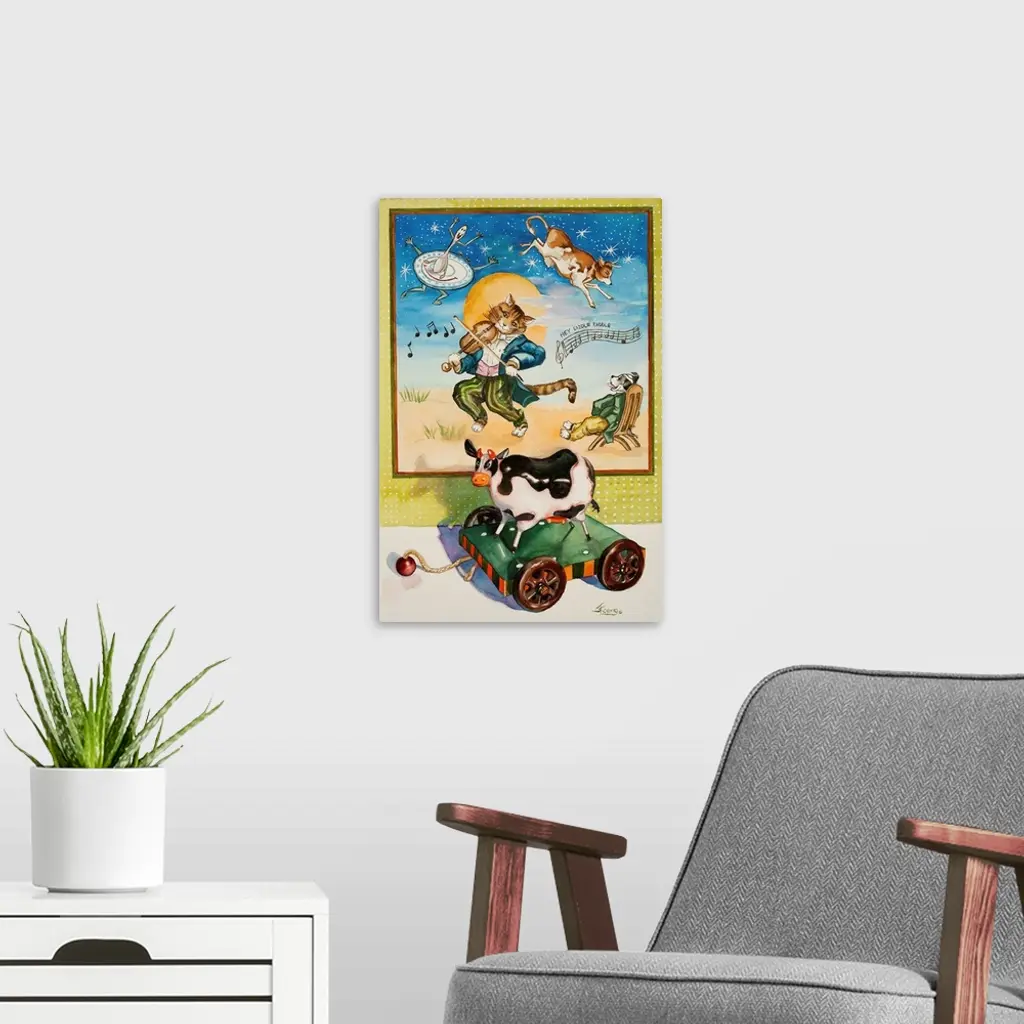Children's book "Hey Diddle Diddle" themed watercolor painting.