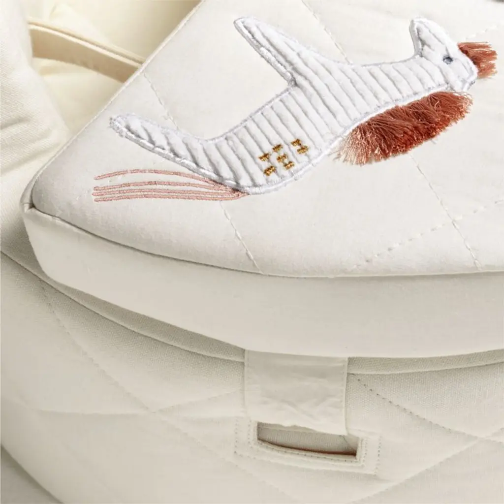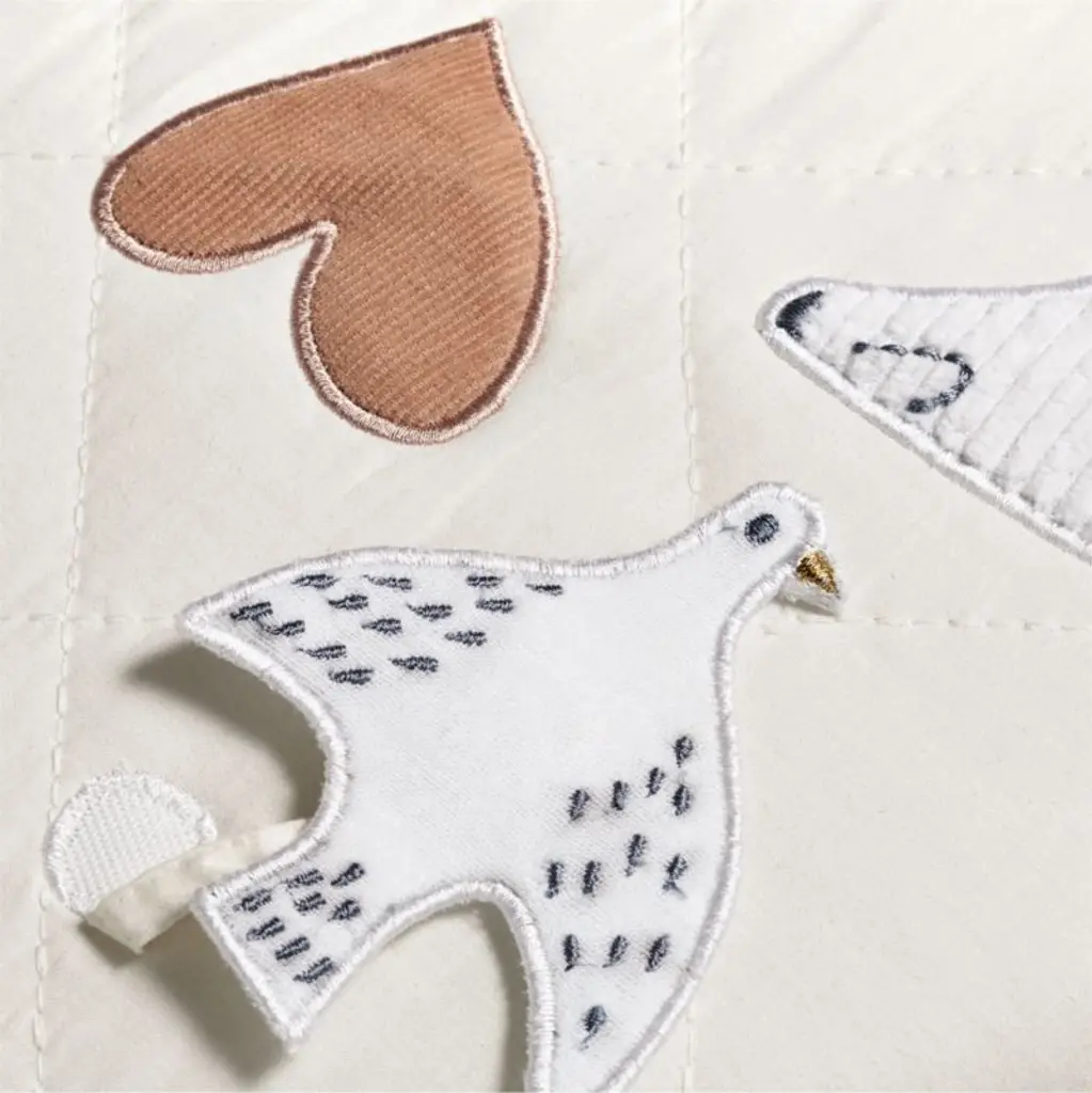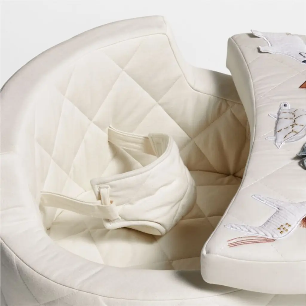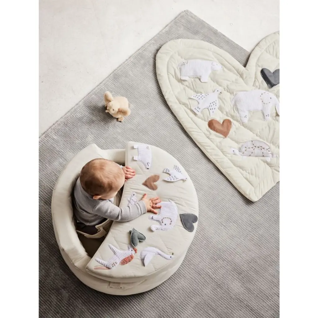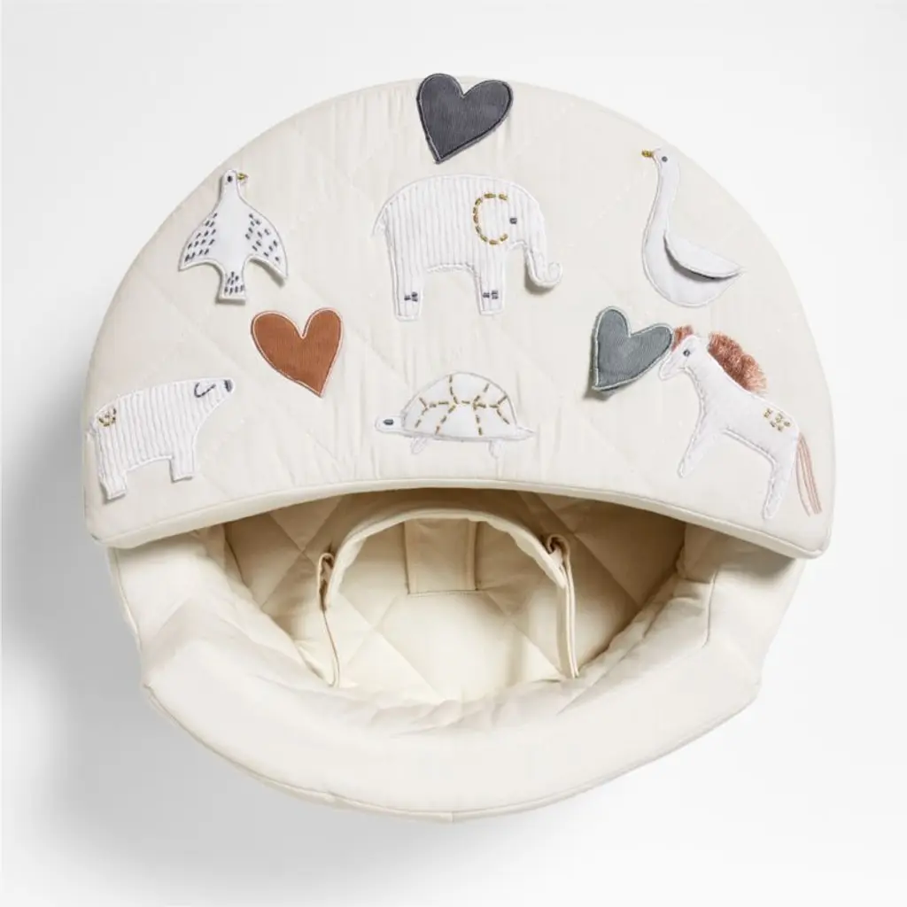 Inspired by Leanne Ford's own hand-drawn heart sketch, our Heya Baby Activity Chair is the best seat in the house for little ones. Its removable activity tray features a playful menagerie of animal friends and colorful hearts, plus flaps, rattles and a baby-safe mirror that encourage hands-on play and sensory exploration. The cushioned chair is snuggly soft, featuring hints of metallic embroidery and a neutral quilted pattern that's perfect for a modern nursery.Our newest collection with star designer Leanne Ford is everything she wishes she had when designing her own daughter's nursery: timeless, vintage-inspired pieces for an effortlessly cozy space.