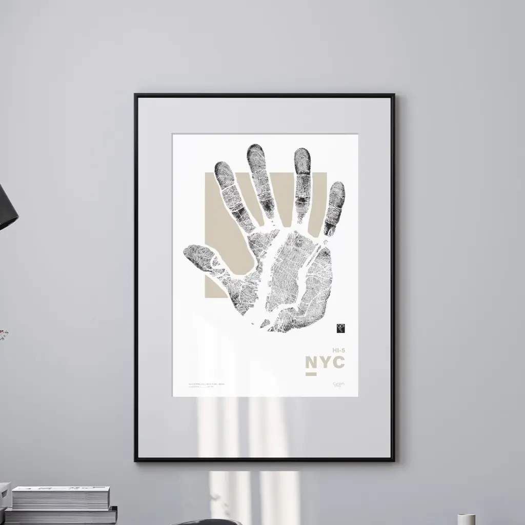 A high-five to the city that never sleeps. Part of the Hi-Five Series, this Limited Edition Print features a full handprint filled with the intricate street map lines of New York City — bold, fast, and full of detail, just like the city itself.From the iconic skyline of Manhattan to the creative energy of Williamsburg, Hi-5 Nyc captures the heartbeat of New York, all within the lines of a hand. A tribute to the city’s spirit of innovation, resilience, and its ever-evolving landscape.What can you see?Limited 1st edition of 100