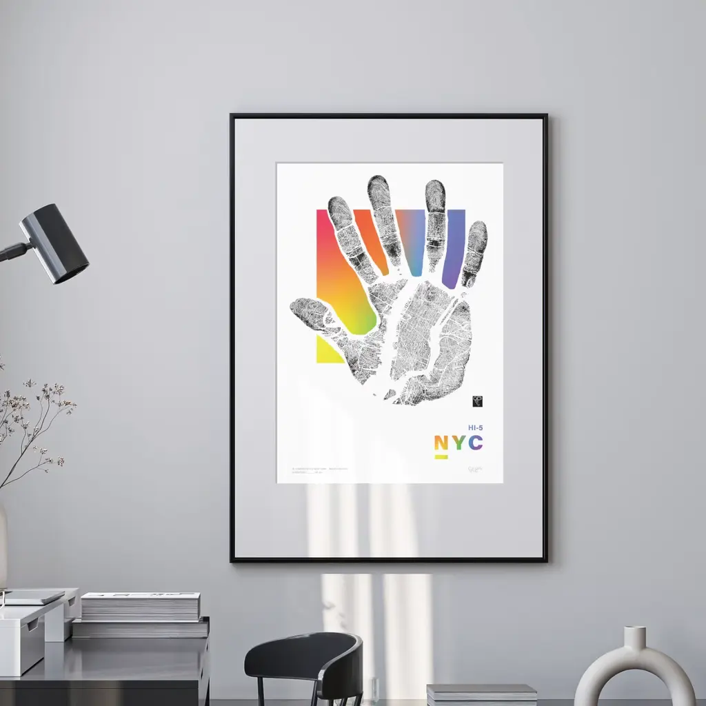 A high-five to the city that never sleeps. Part of the Hi-Five Series, this Limited Edition Print features a full handprint filled with the intricate street map lines of New York City — bold, fast, and full of detail, just like the city itself.From the iconic skyline of Manhattan to the creative energy of Williamsburg, Hi-5 Nyc captures the heartbeat of New York, all within the lines of a hand. A tribute to the city’s spirit of innovation, resilience, and its ever-evolving landscape.What can you see?Limited 1st edition of 100