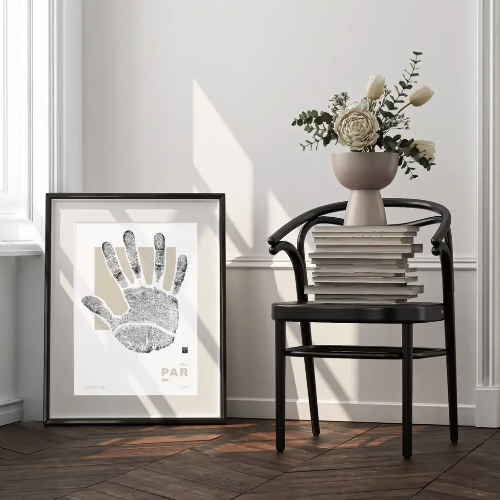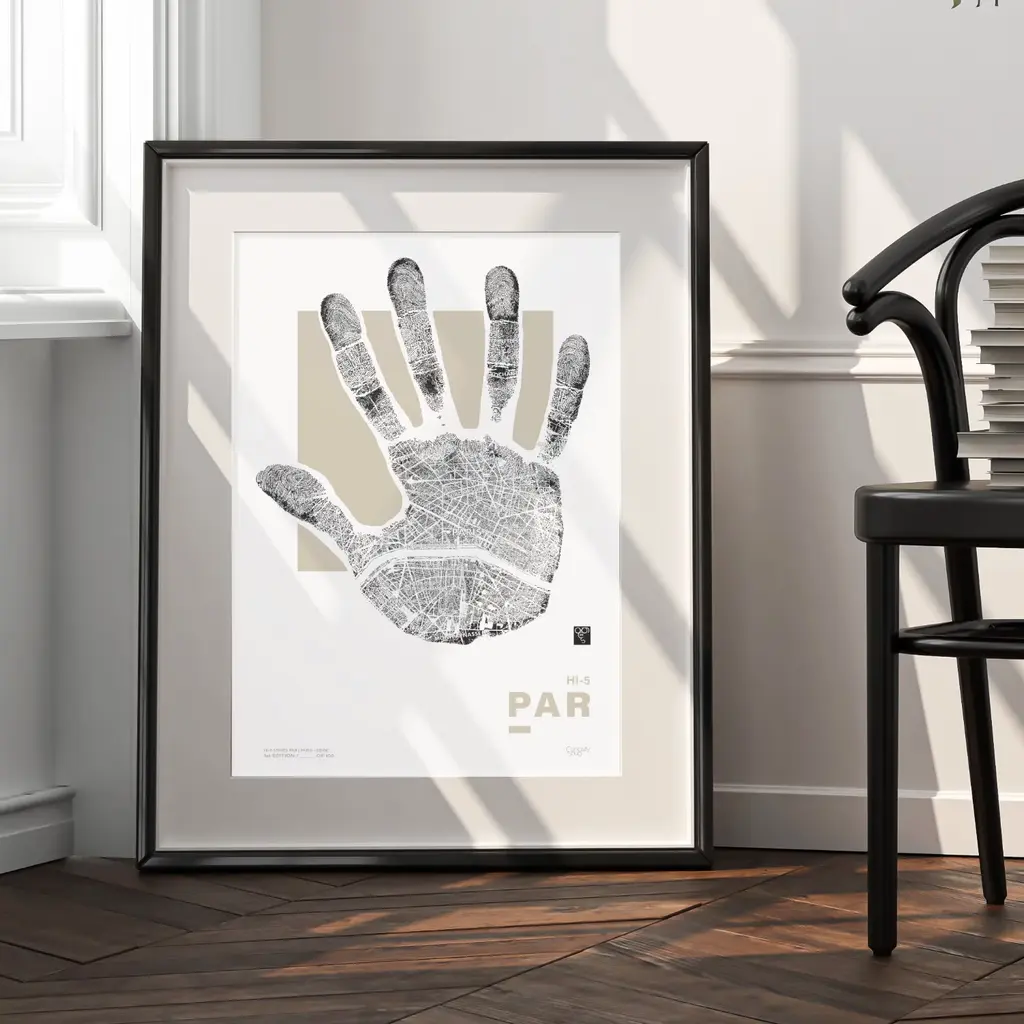 A high-five to the City of Light. Part of the Hi-Five Series, this Limited-Edition Print features a full handprint intricately filled with Paris's winding street map lines—a city known for its elegance, charm, and quiet layers of history.From the grandeur of the Champs-Élysées to the literary soul of Saint-Germain, Hi-5 Paris - Beige captures the romance and rhythm of Paris in the palm of a hand. It celebrates beauty, culture, and everyday magic woven through its iconic streets.What can you see?Limited 1st Edition of 100