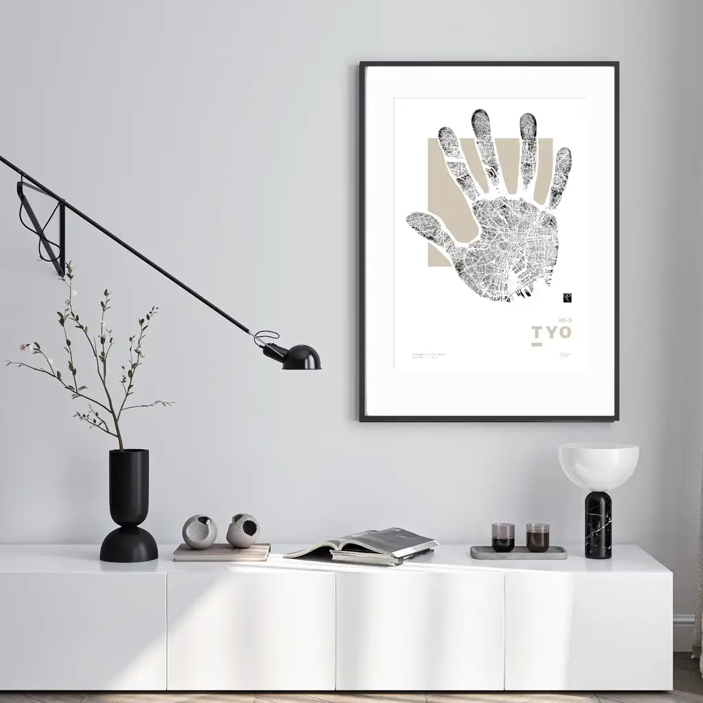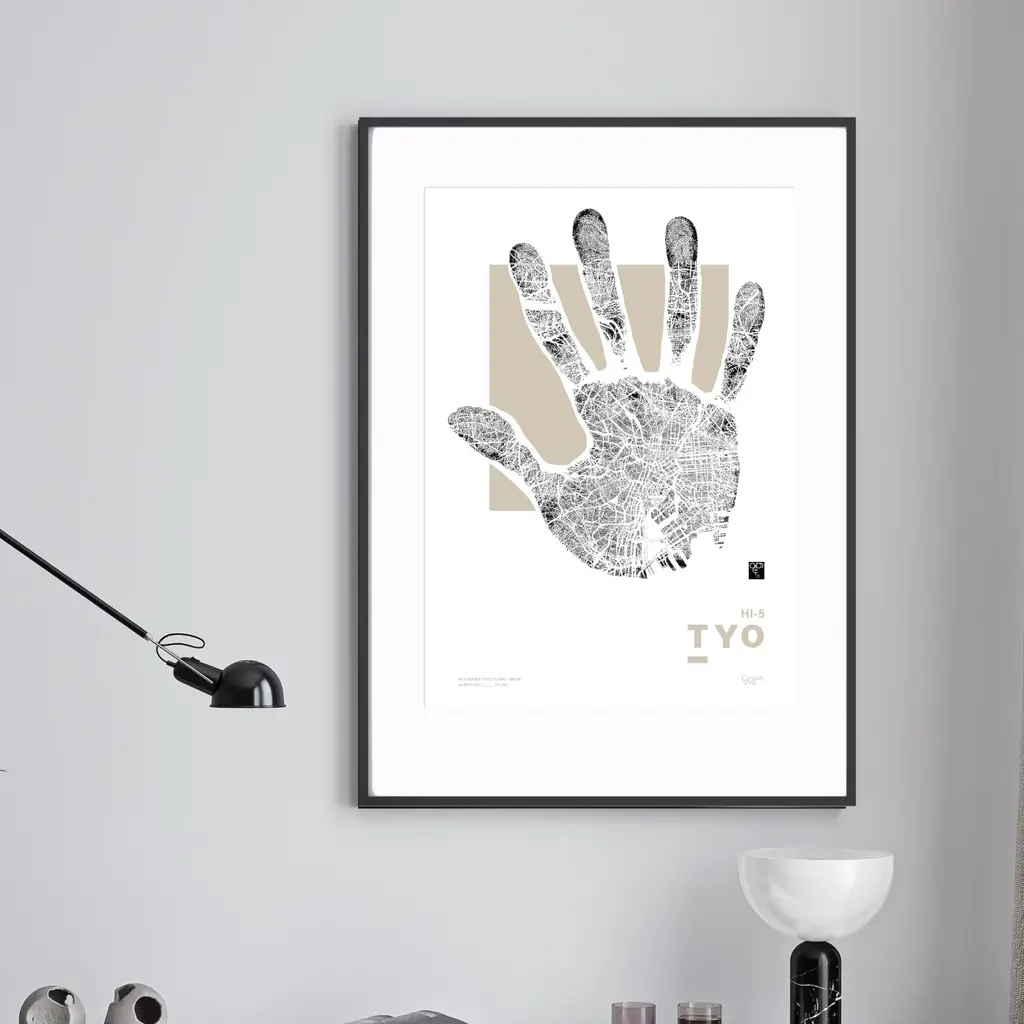 A high-five to Tokyo’s vibrant rhythm. Part of the Hi-Five Series, this Limited Edition Print features a full handprint intricately filled with the street map lines of Japan’s capital — a city where tradition and technology meet in perfect balance.From the buzz of Shibuya to the waterside calm of Koto City, this piece invites you to trace Tokyo’s energy through the palm of a hand. It’s a tribute to precision, pace, and the layered beauty of one of the world’s most dynamic cities.What can you see?1st Edition of 100