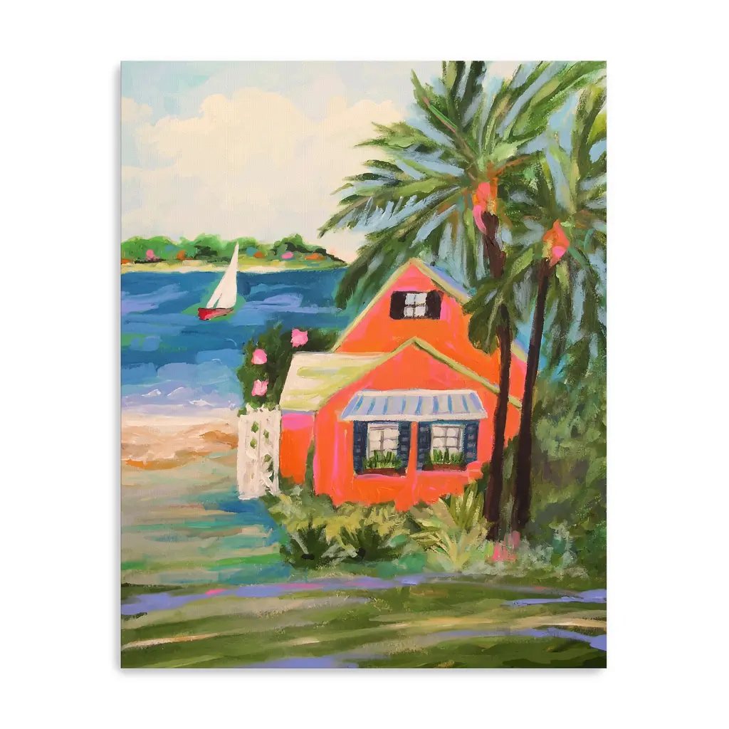 Featuring a picturesque home set against the beach, this artwork adds a peaceful charm to any space. Our Gallery Wrap Canvas Prints are proudly assembled with high quality materials in California, USA. Each piece is printed on a thick, archival grade canvas using Giclee technology. It is then hand-stretched by our experienced artisans over solid wood bars, which will not warp over time. The final product is a piece personally crafted for you to confidently display on your wall. Care and Assembly: Ensure that the location of your piece has little to no exposure to heat, sunlight, and moisture. Wipe clean, only if needed. Each piece includes a sawtooth hanger to hang on your wall vertically.